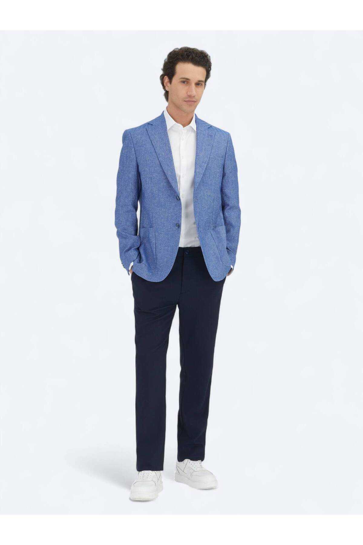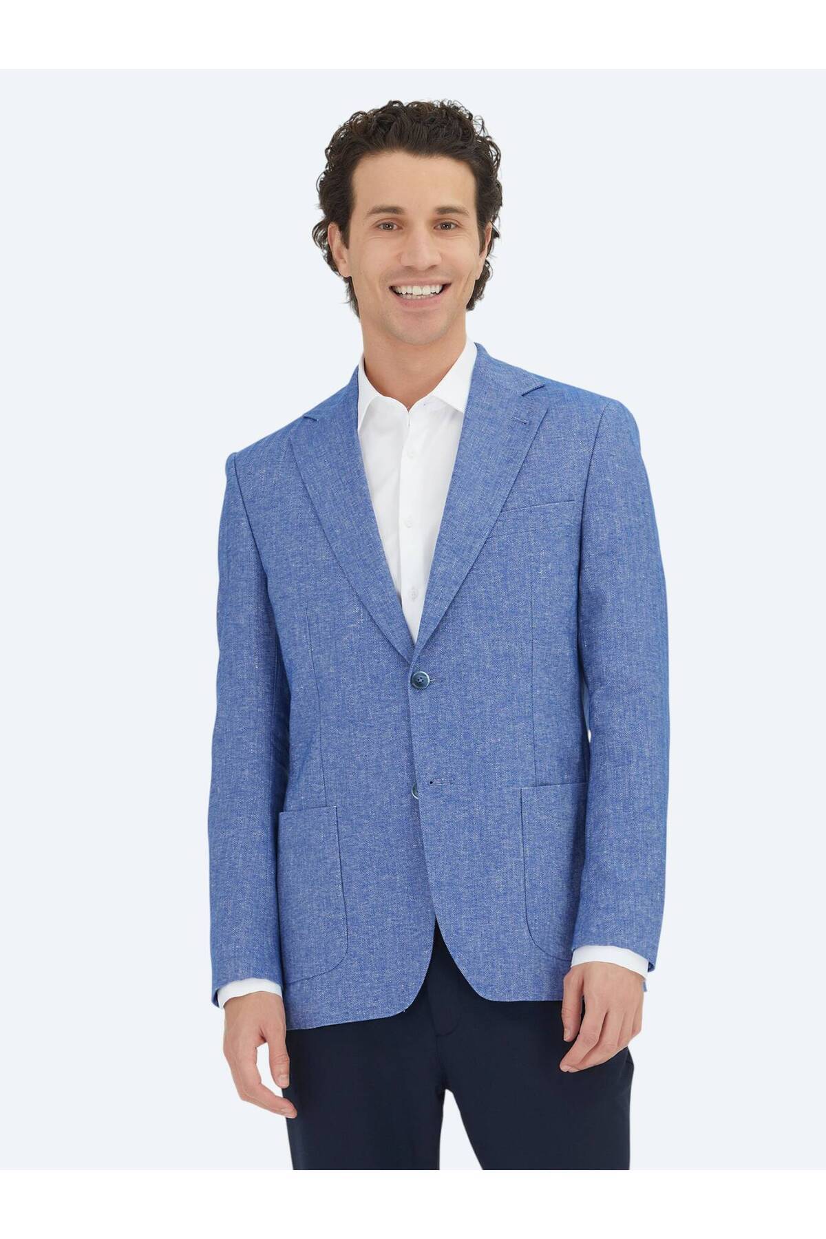 Mavi Çizgili Modern Fit Pamuk Karışımlı Ceket Mavi Çizgili Modern Fit Pamuk Karışımlı Ceket 51008 58