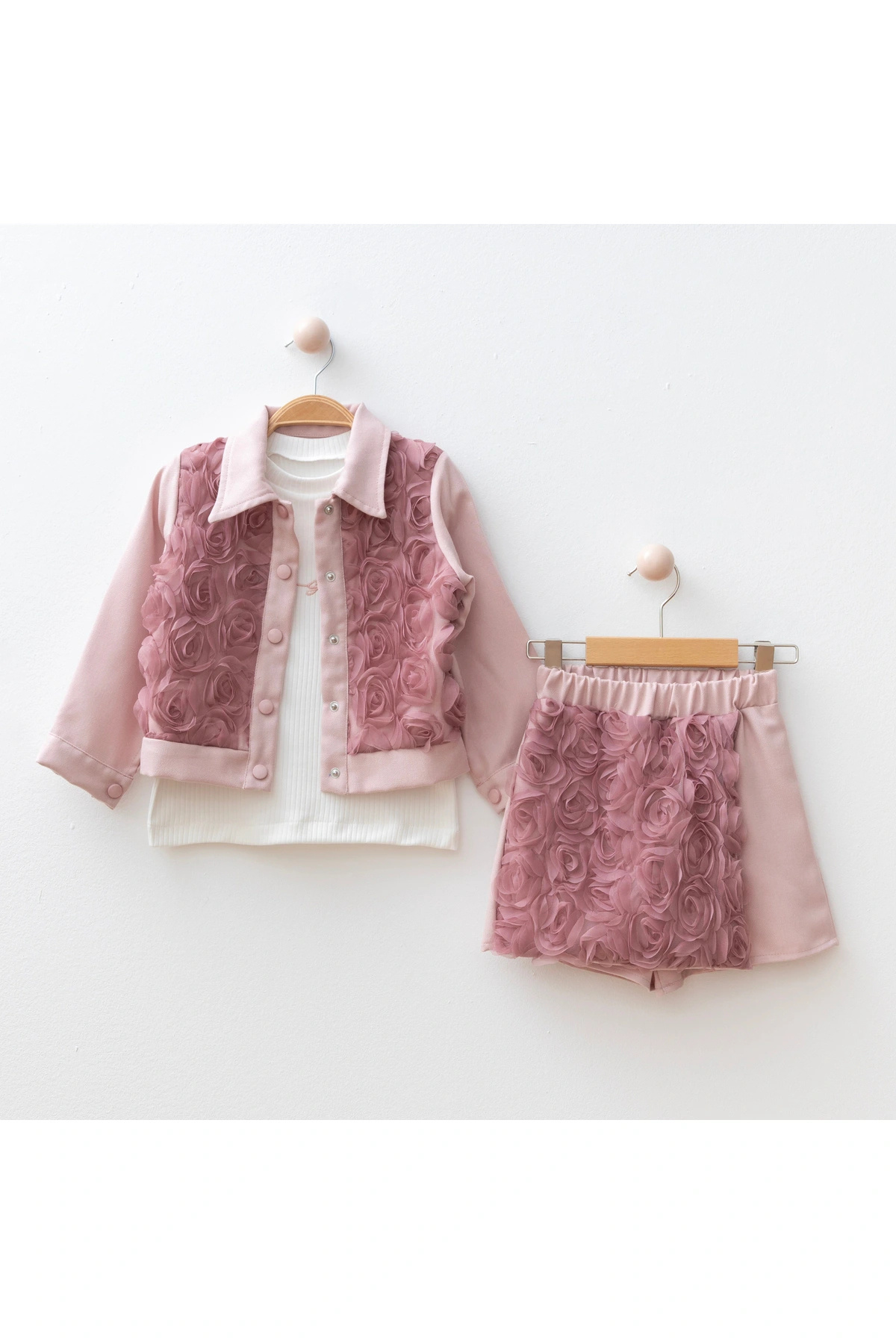 Bingül Kız Çocuk 3’lü Gül Detaylı Takım – Ceket, Penye ve Şort | 2-5 Yaş Bingül Kız Çocuk 3’lü Gül Detaylı Takım – Ceket, Penye ve Şort | 2-5 Yaş MYL003 5 Yaş