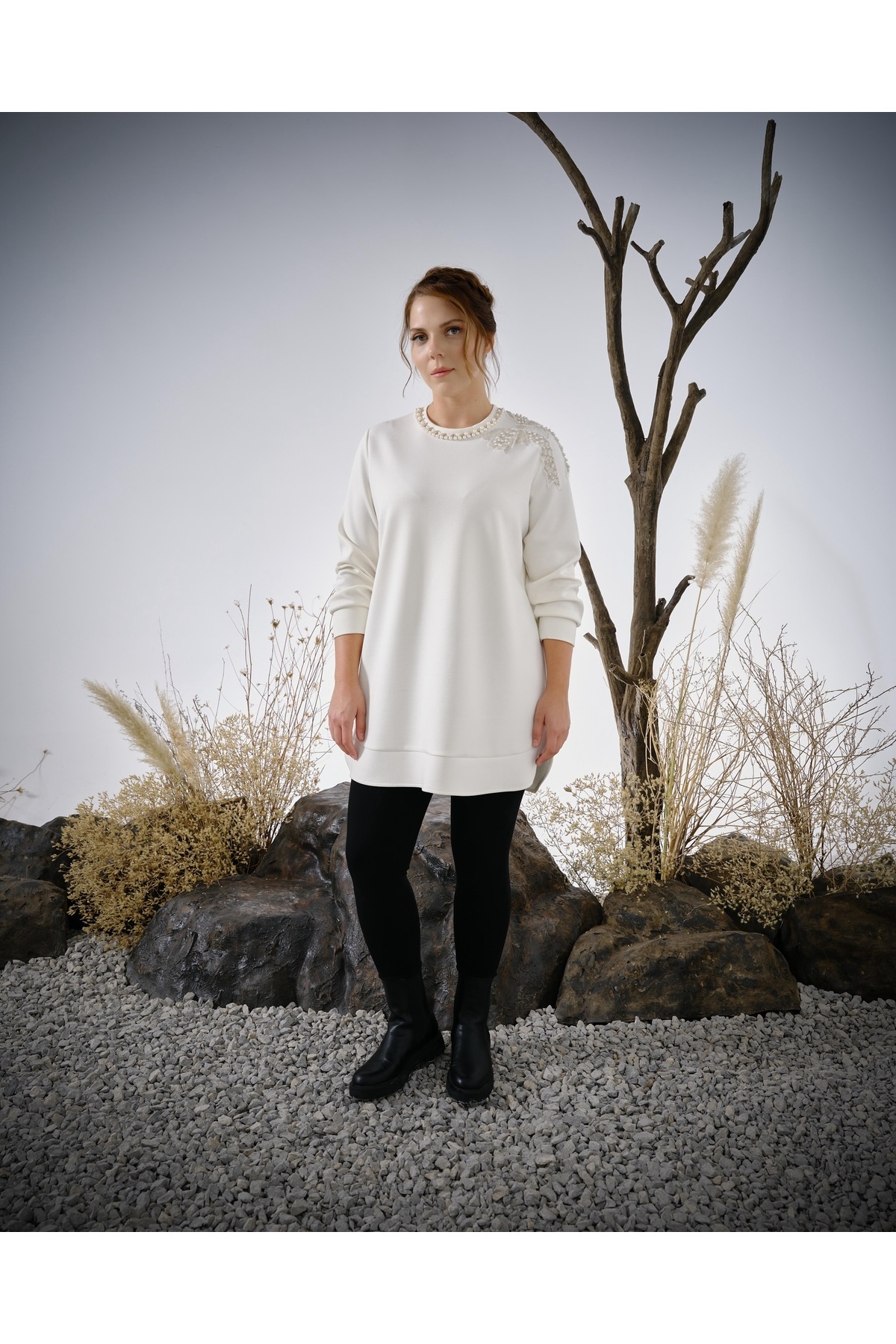 Fuat Gürşen 4329 Yaka Broş Detay Tunik Fuat Gürşen 4329 Yaka Broş Detay Tunik
