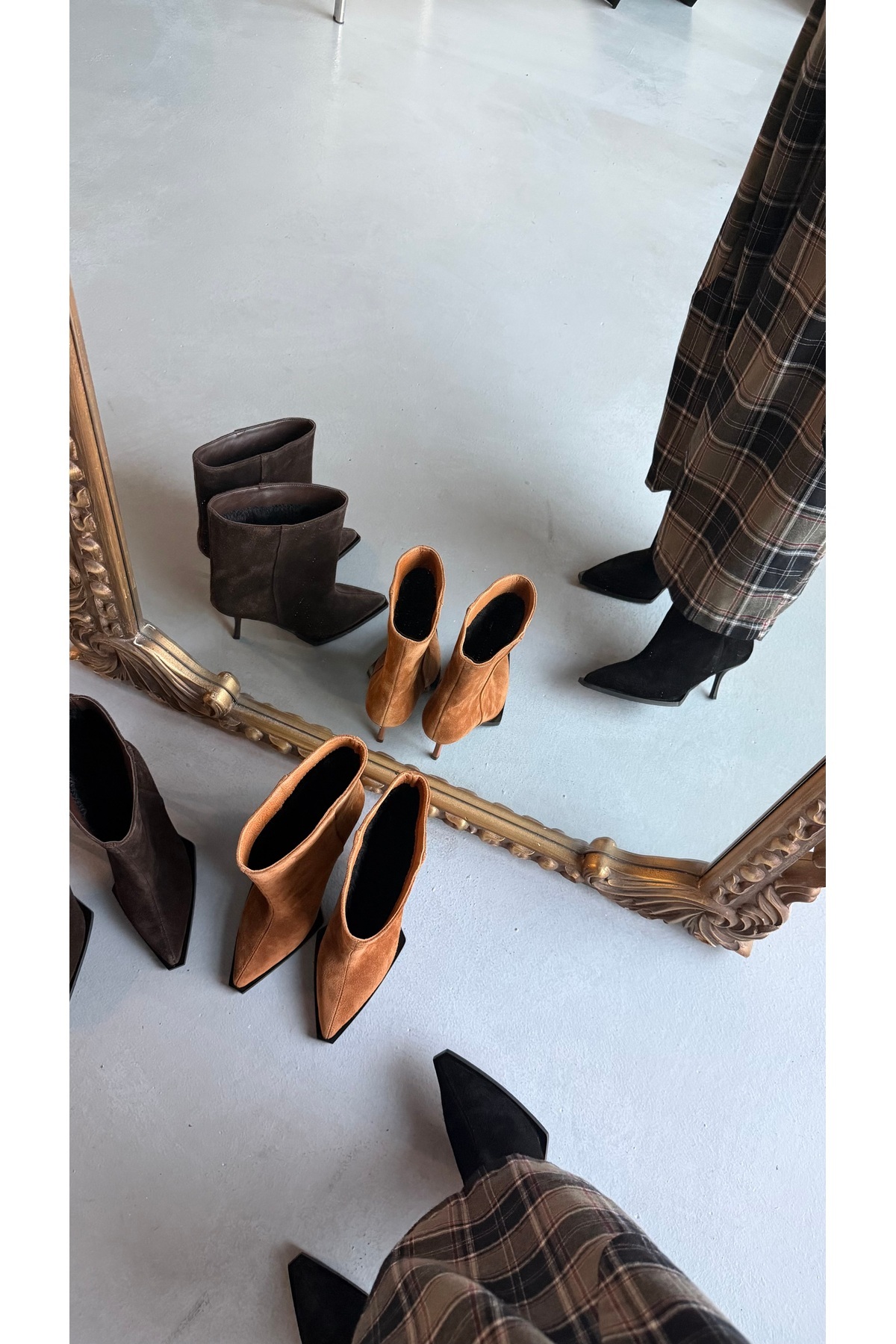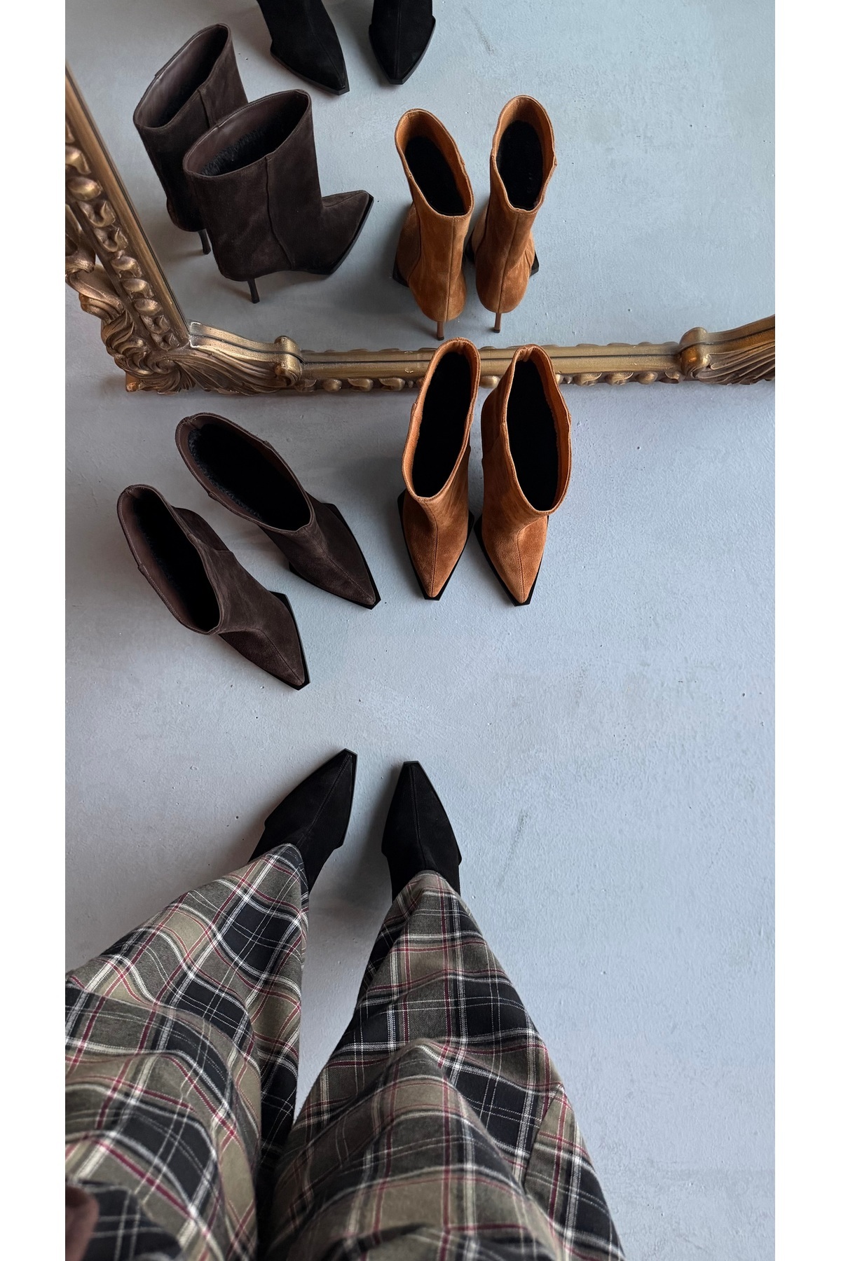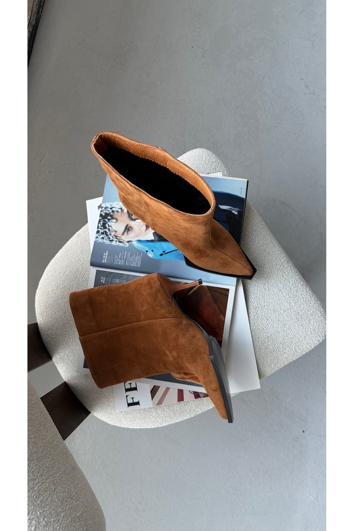 Taba Hakiki Süet Deri Sivri Burun Dikişli Kadın Bot Taba Hakiki Süet Deri Sivri Burun Dikişli Kadın Bot ES-2652 40