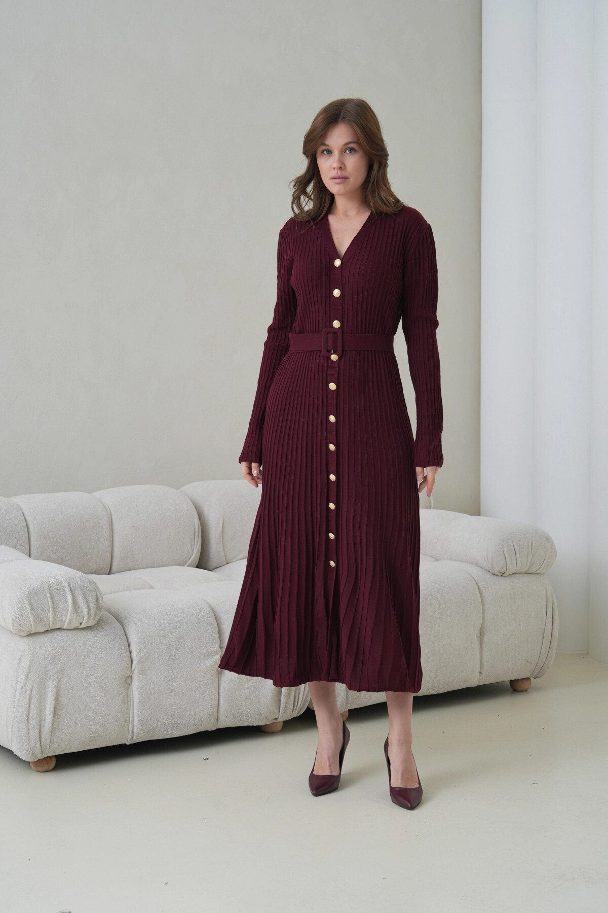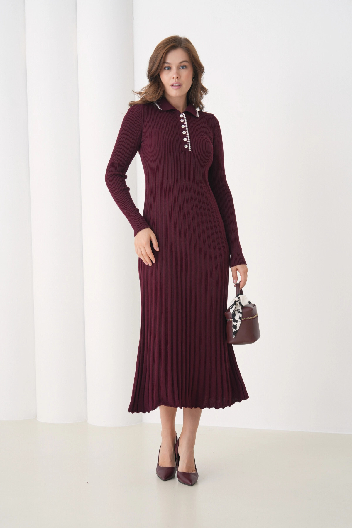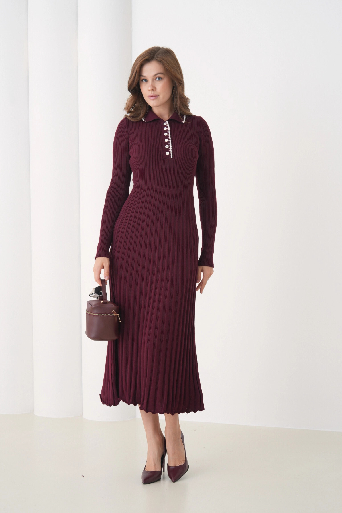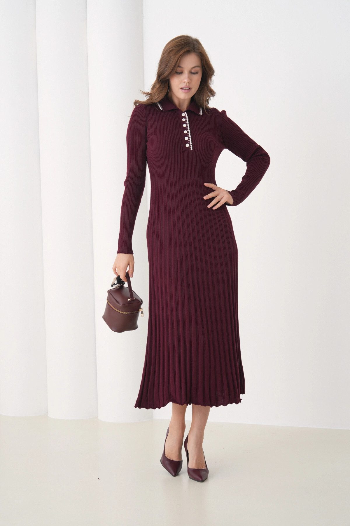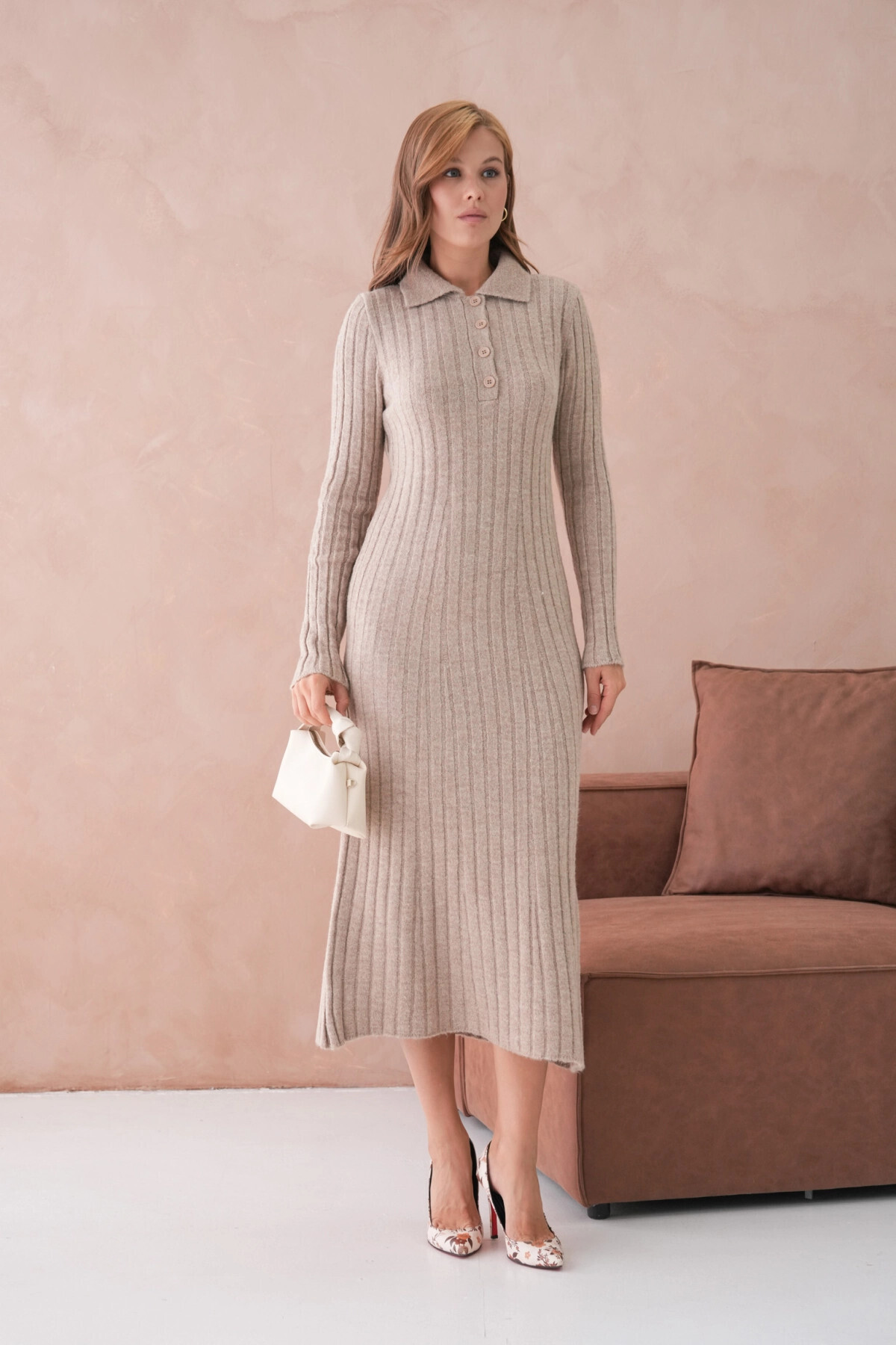 Kadın Polo Yaka Düğme Detay Kaşkorse Uzun Triko Elbise Kadın Polo Yaka Düğme Detay Kaşkorse Uzun Triko Elbise 12348 Standart