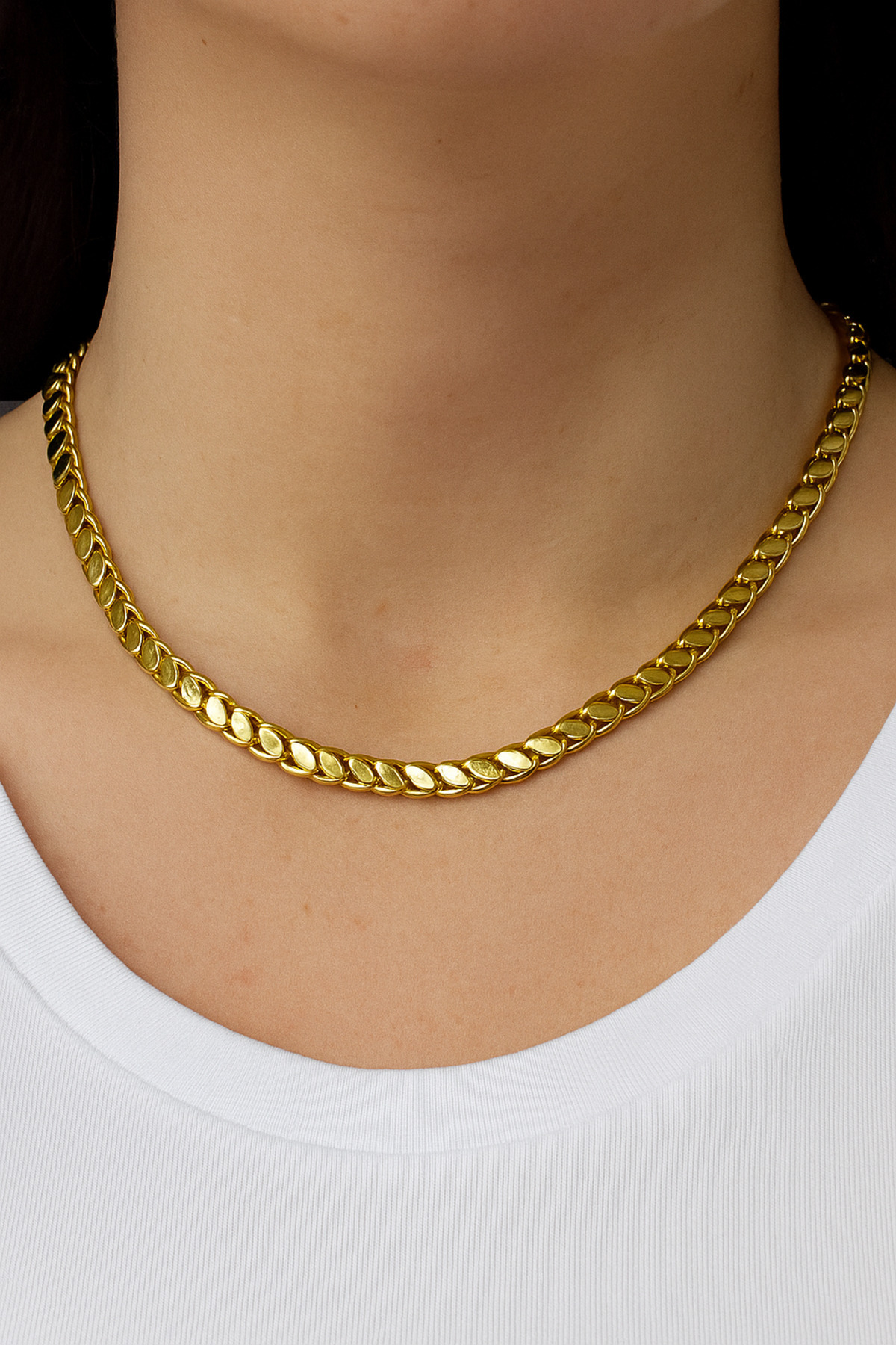 Çelik üzeri altın kaplama kuyumcu işçiliğinde tasarlanmış arpa zincir kolye Çelik üzeri altın kaplama kuyumcu işçiliğinde tasarlanmış arpa zincir kolye TYCE79D21D7C512CE534DC900 60 cm