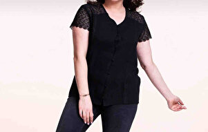 Siyah Dantel Detaylı Büyük Beden Bluz Siyah Dantel Detaylı Büyük Beden Bluz 560 - S 50