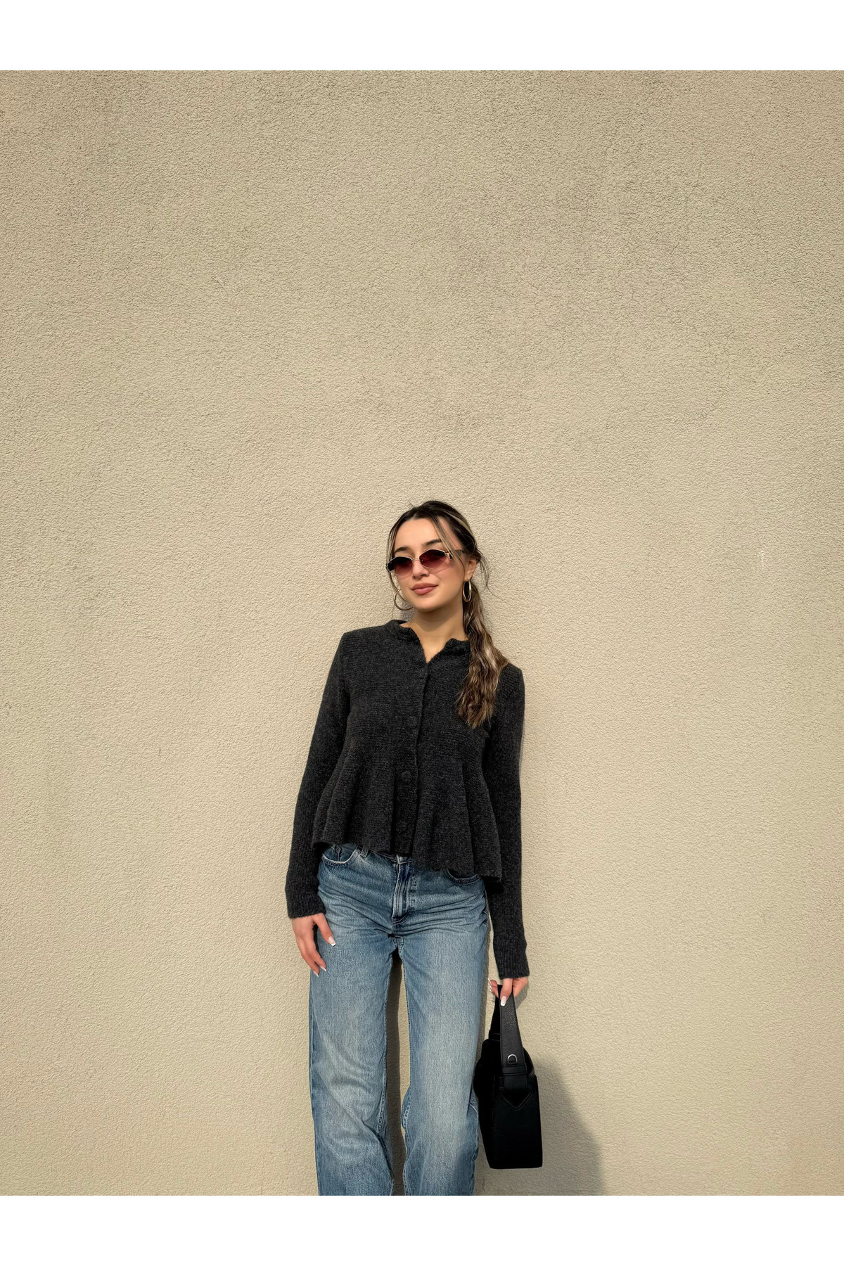KADIN YUMUŞAK DOKULU VOLANLI PEPLUM DÜĞME TRİKO HIRKA KADIN YUMUŞAK DOKULU VOLANLI PEPLUM DÜĞME TRİKO HIRKA ELFCO-HRK Standart