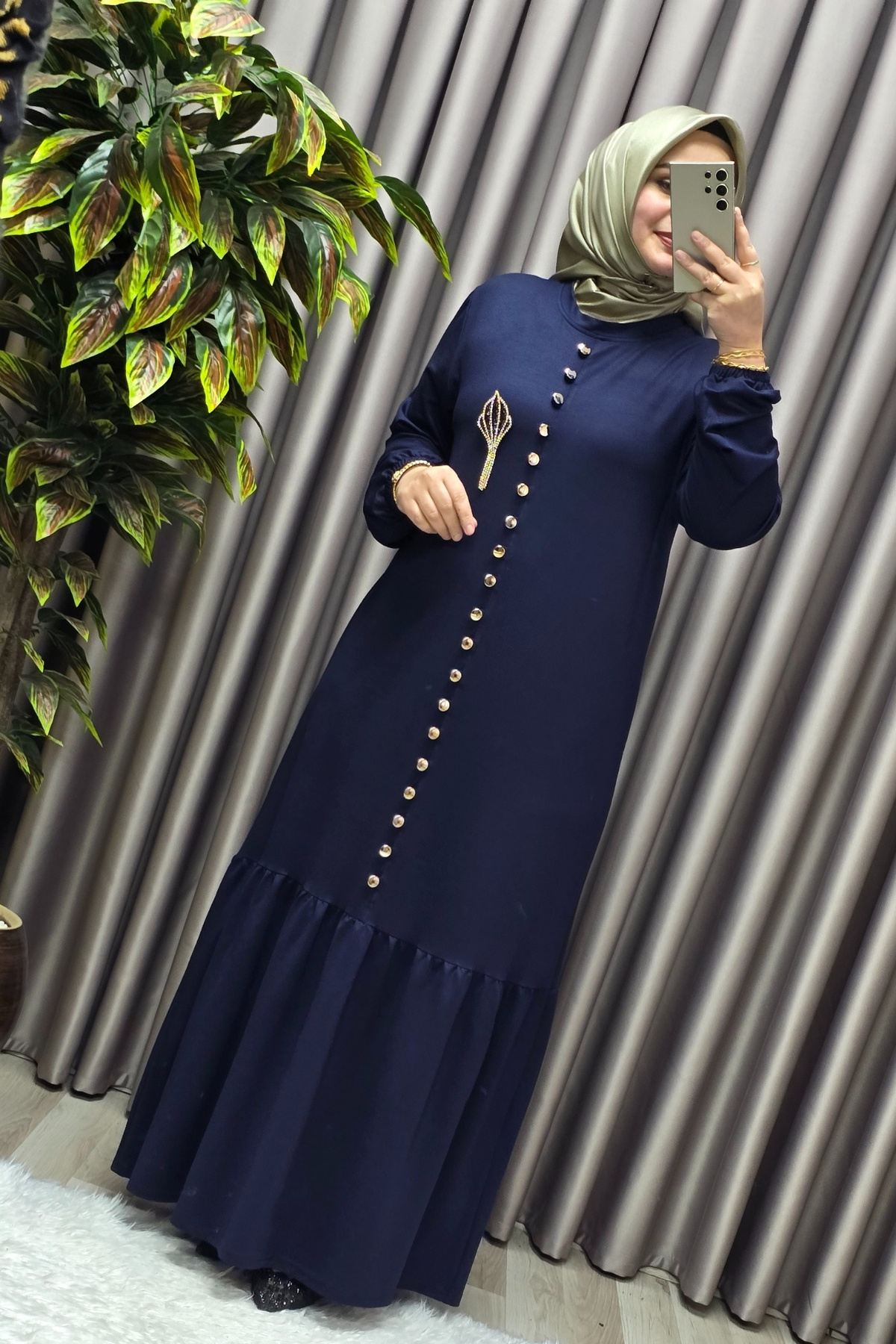 Kadın Giyim Büyük Beden Kristal Düğmeli Elbise Kadın Giyim Büyük Beden Kristal Düğmeli Elbise ELT1223 8