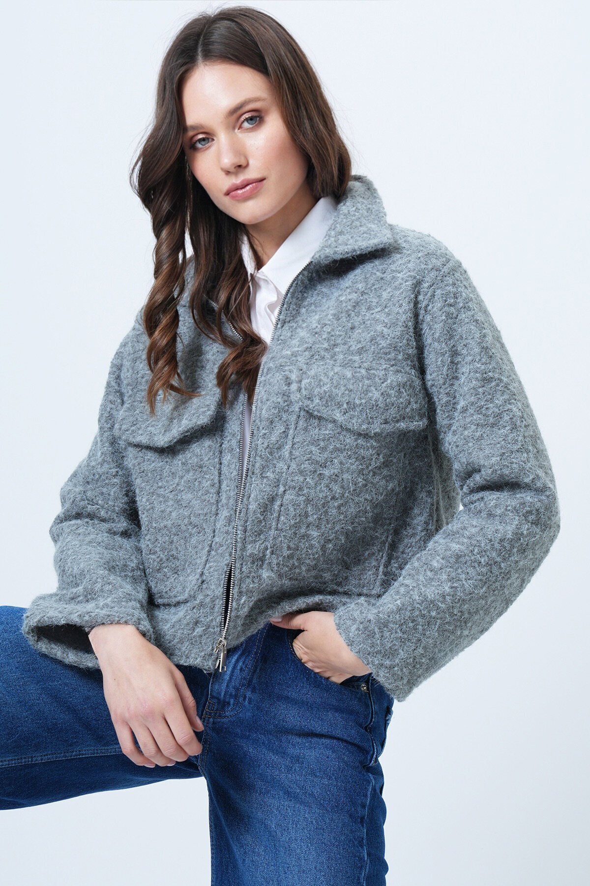 ALAÇATI STİLİ Kadın Gri Çift Cepli Fermuar Kapamalı Buklet Ceket Vs01507 ALAÇATI STİLİ Kadın Gri Çift Cepli Fermuar Kapamalı Buklet Ceket Vs01507 VS01507 L