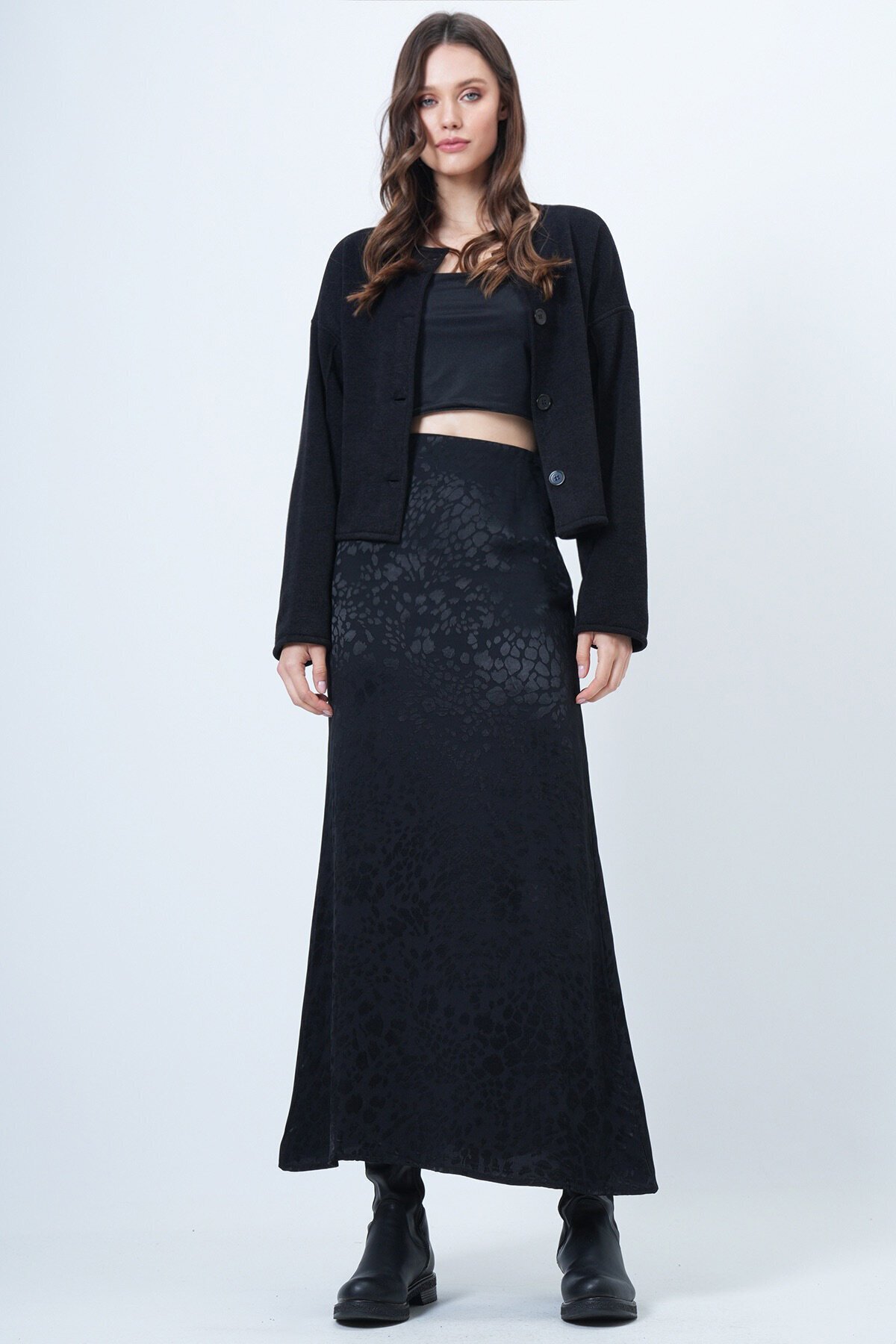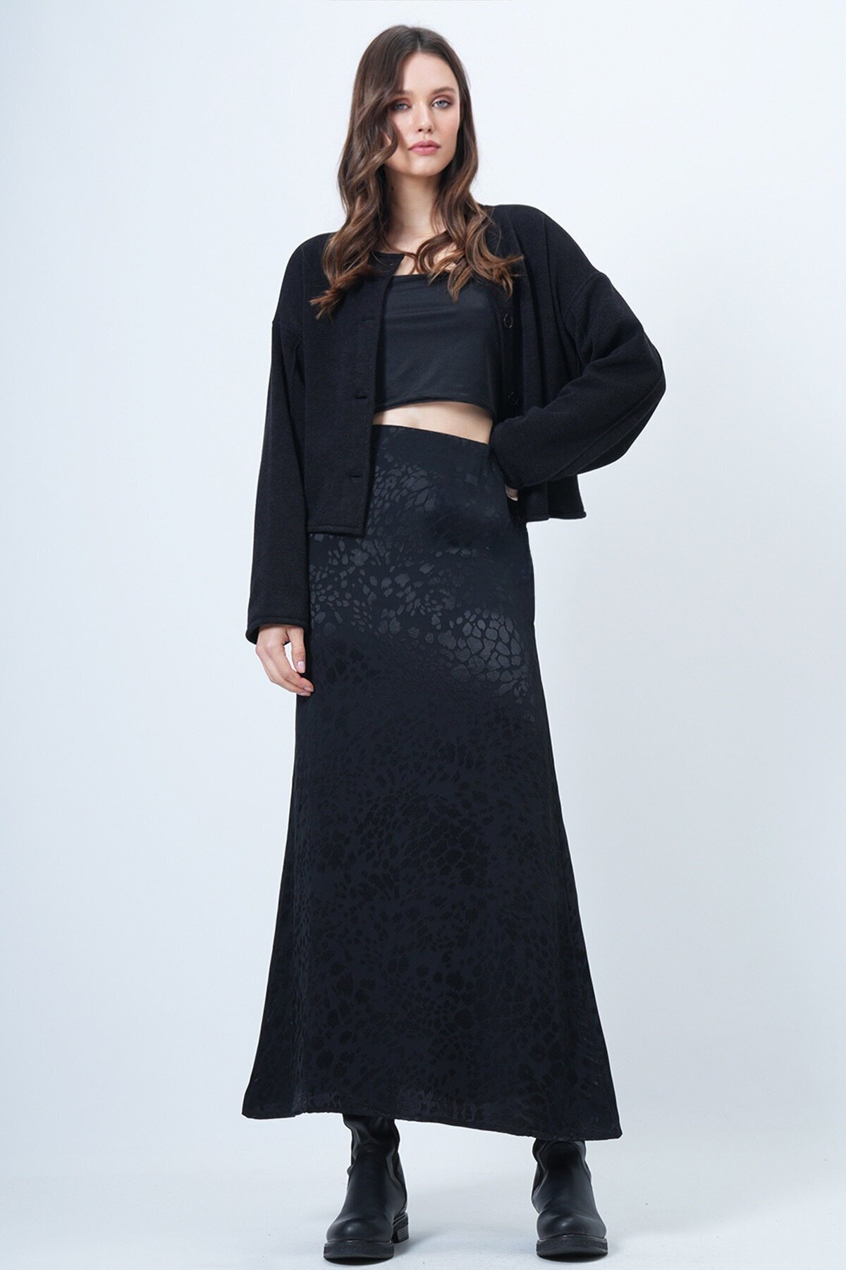 Kadın Siyah Desenli Fermuar Kapamalı Midi Boy Etek Vs01511 Kadın Siyah Desenli Fermuar Kapamalı Midi Boy Etek Vs01511 VS01511 L