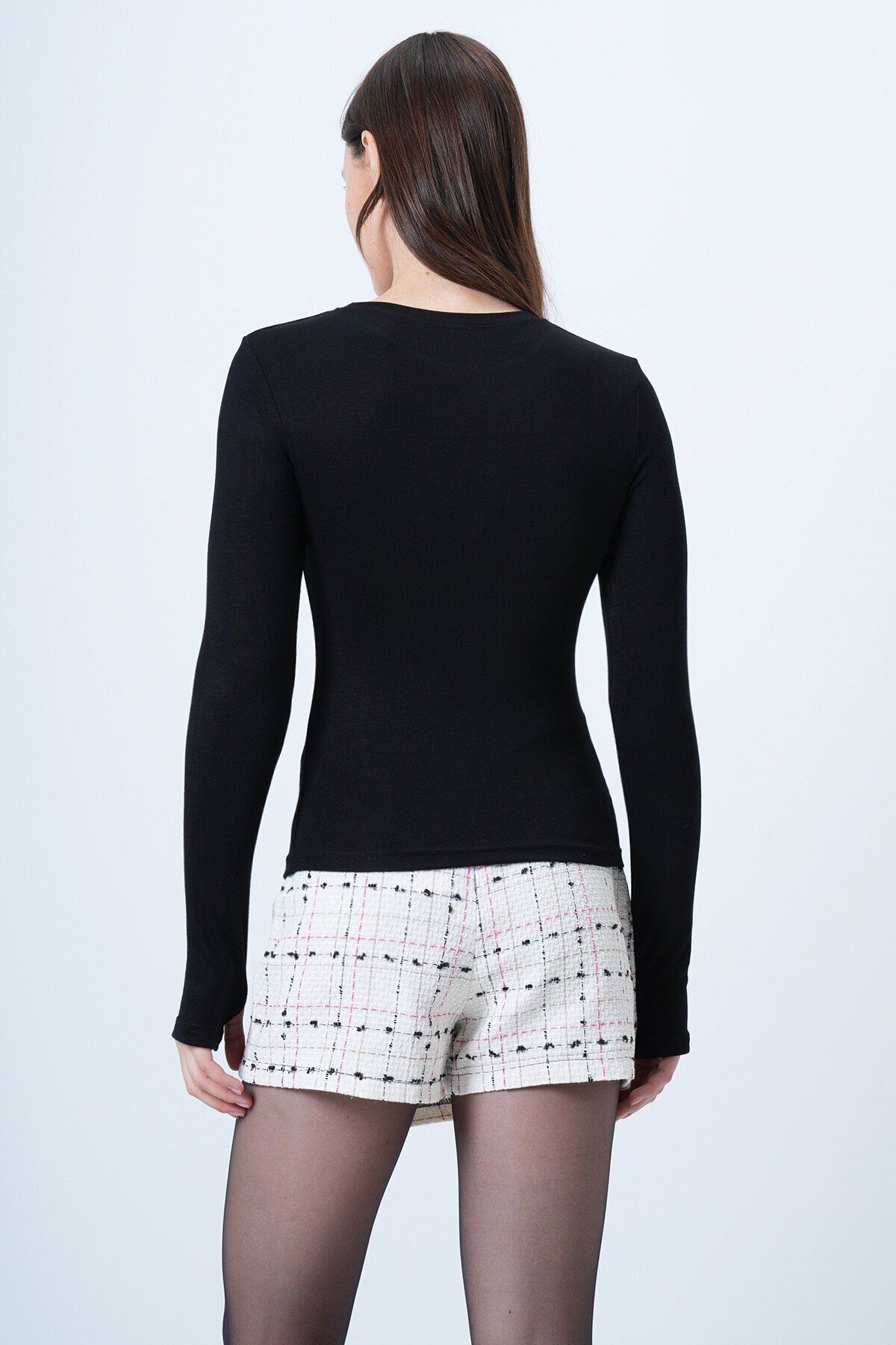 Kadın Siyah Parmak Detaylı Bisiklet Yaka Basic Bluz VS01558 Kadın Siyah Parmak Detaylı Bisiklet Yaka Basic Bluz VS01558 XL