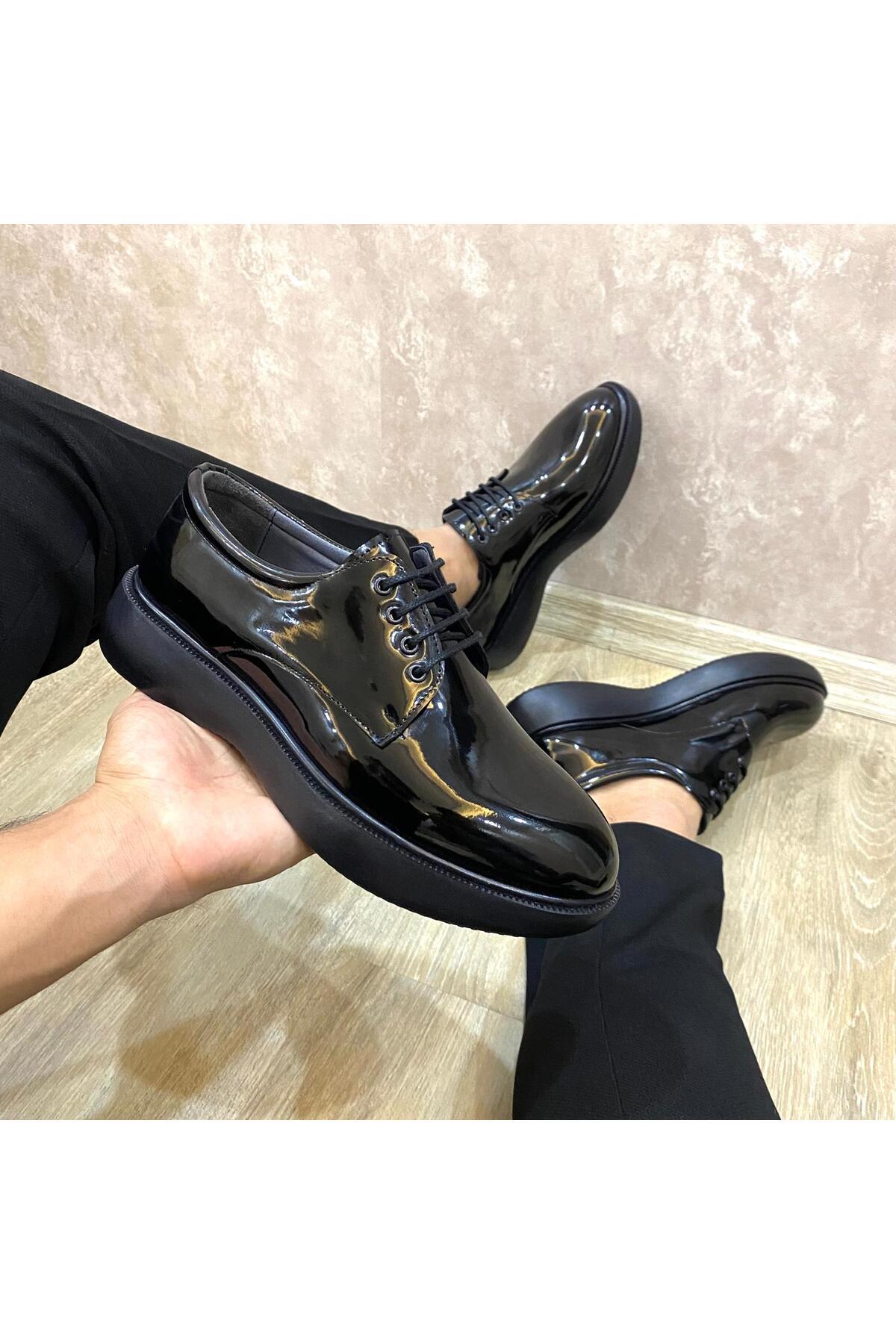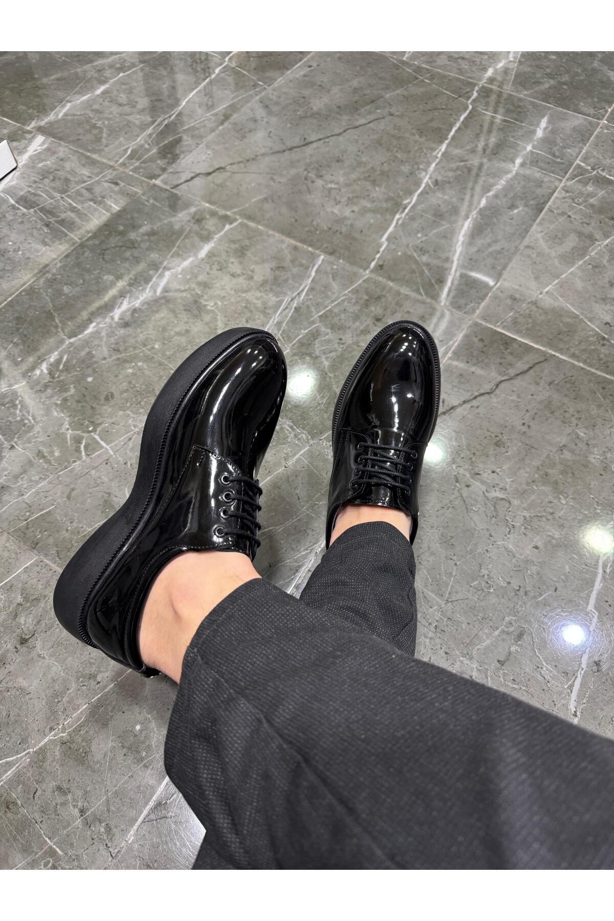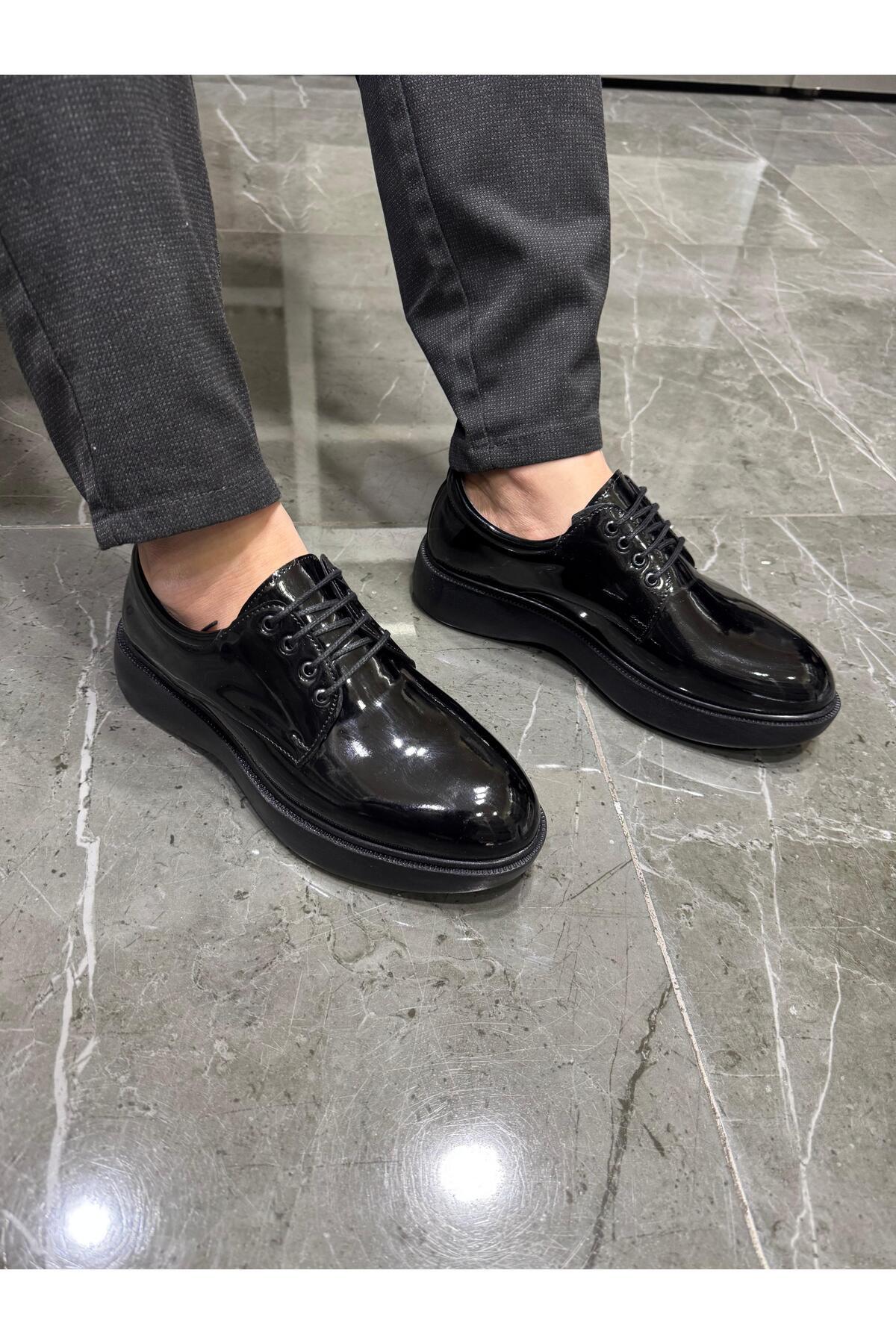 Siyah Rugan Kalın Taban Erkek Klasik Ayakkabı Siyah Rugan Kalın Taban Erkek Klasik Ayakkabı DK1 45