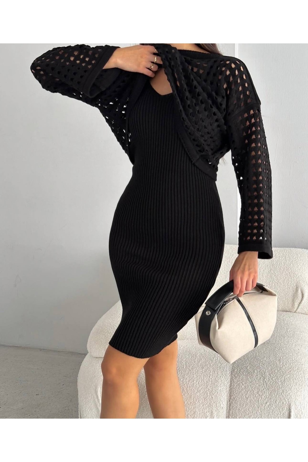 İkili Takım Ajurlu Kazak ve Triko Elbise İkili Takım Ajurlu Kazak ve Triko Elbise HK00001 L