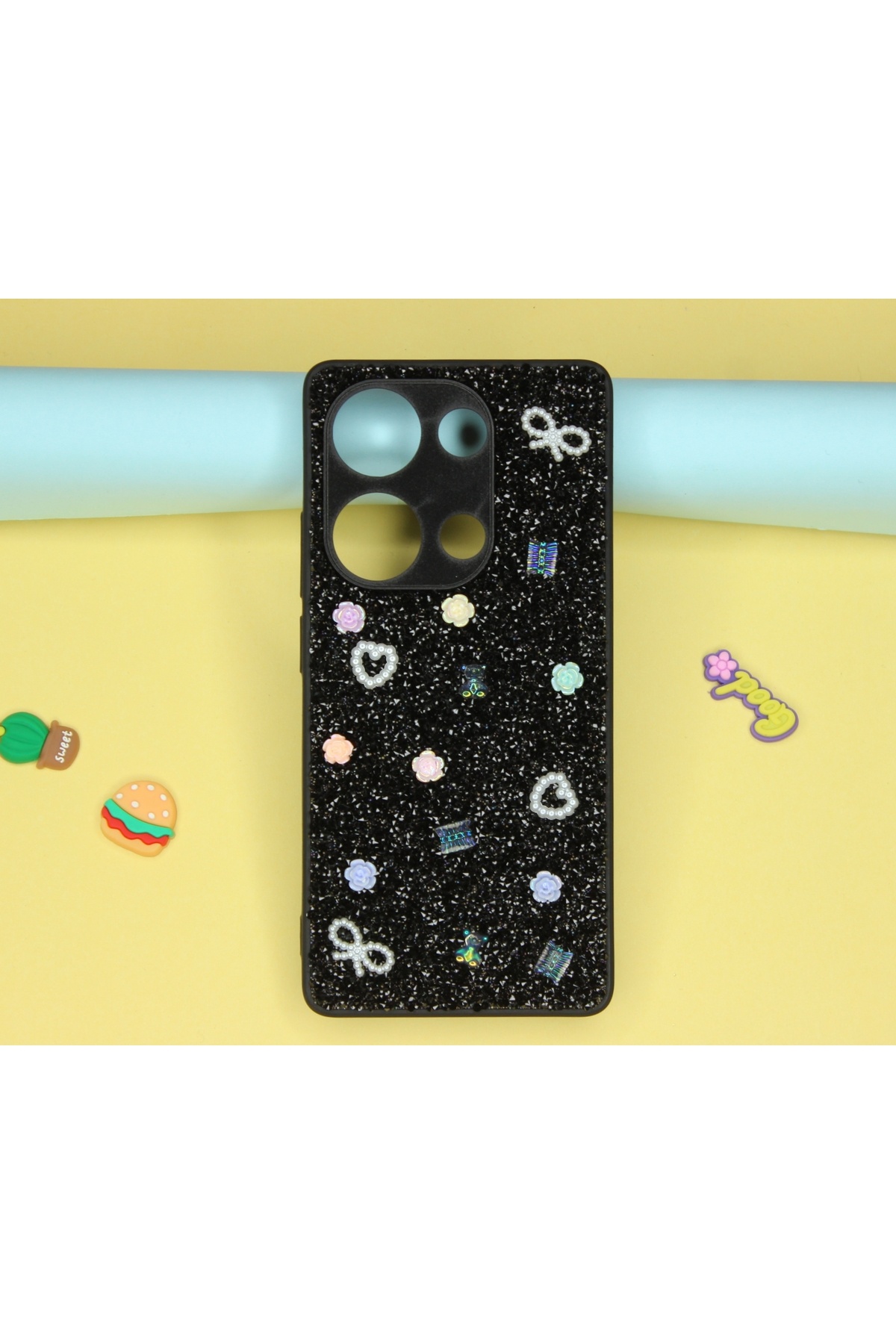 Oppo A38 Kılıf Taşlı Gül Desenli Silikon Oppo A38 Kılıf Taşlı Gül Desenli Silikon تک سایز