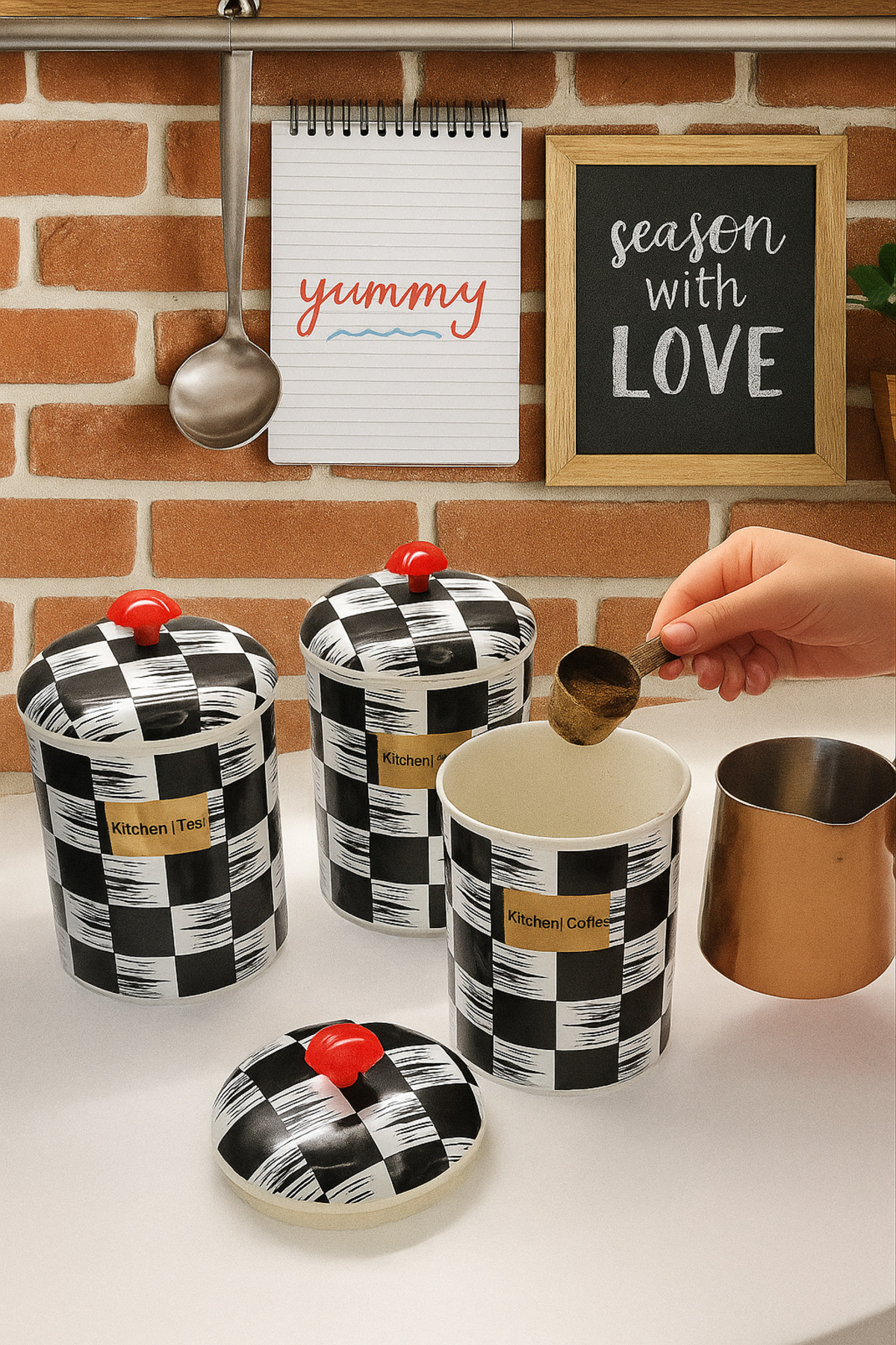 3’lü Siyah Beyaz Desenli Plastik Baharatlık Seti – Kitchen Coffee Tea Sugar Kapaklı Saklama Kabı 3’lü Siyah Beyaz Desenli Plastik Baharatlık Seti – Kitchen Coffee Tea Sugar Kapaklı Saklama Kabı 3LÜBHRT تک سایز