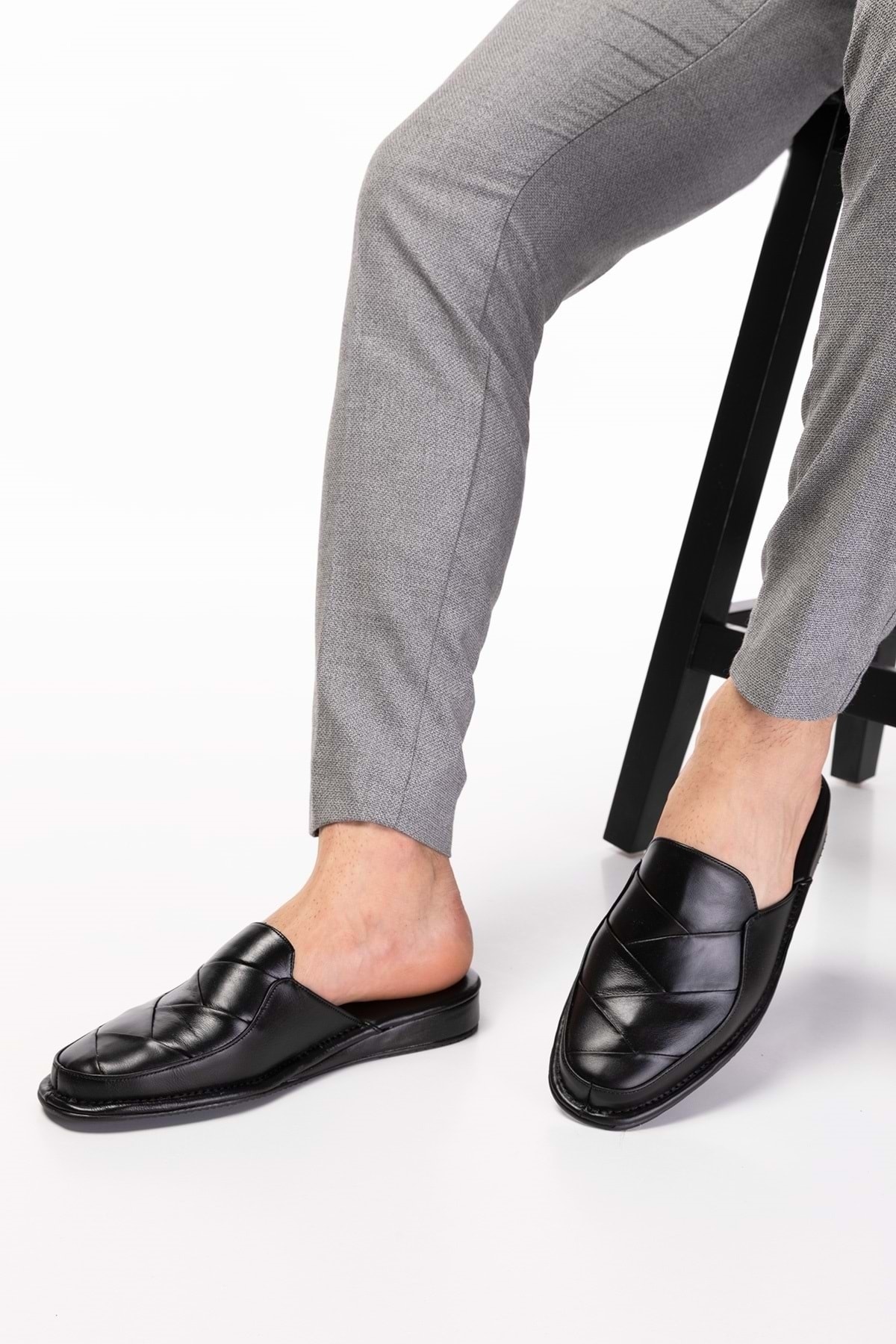 Erkek Hakiki Deri Püskül Detaylı Damat Ev Terliği kayaş.135 Siyah Erkek Hakiki Deri Püskül Detaylı Damat Ev Terliği kayaş.135 Siyah 353519923 46
