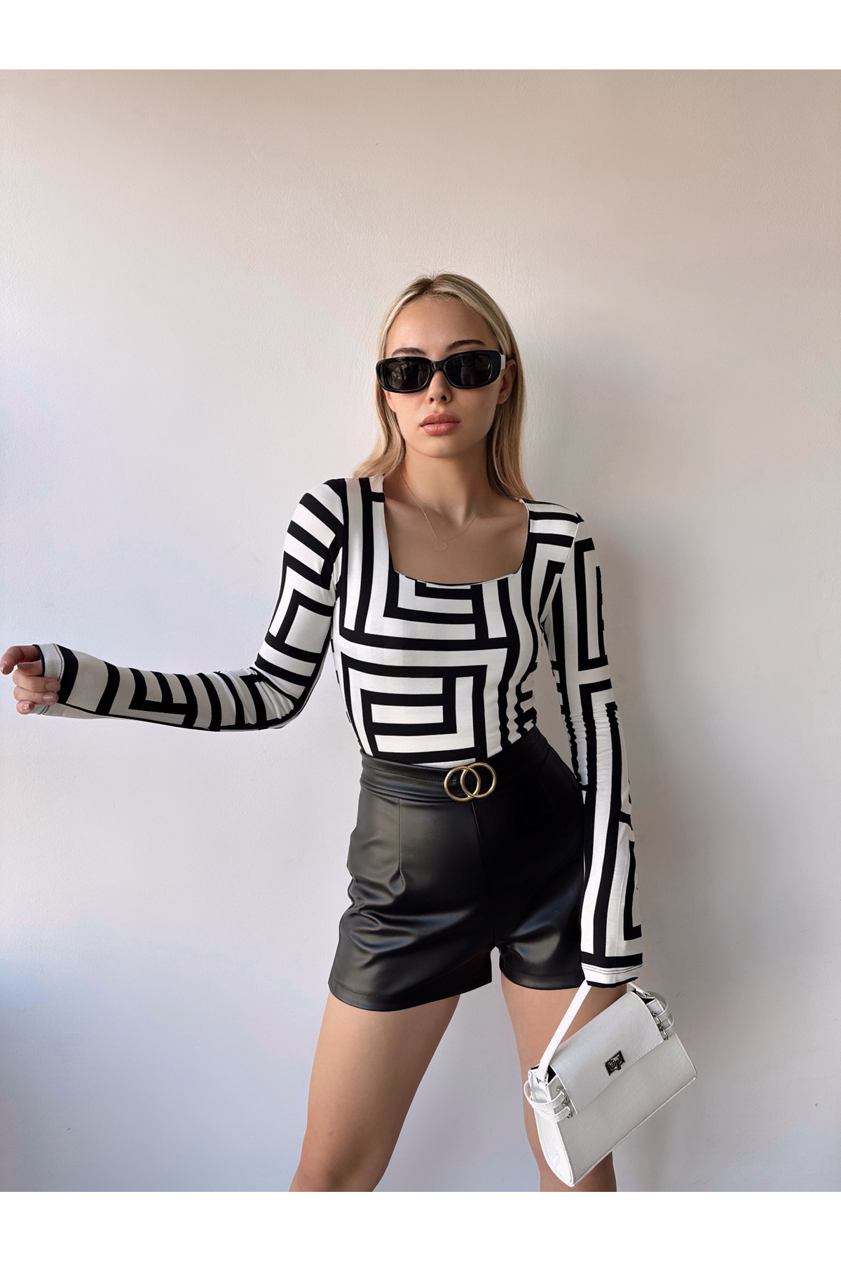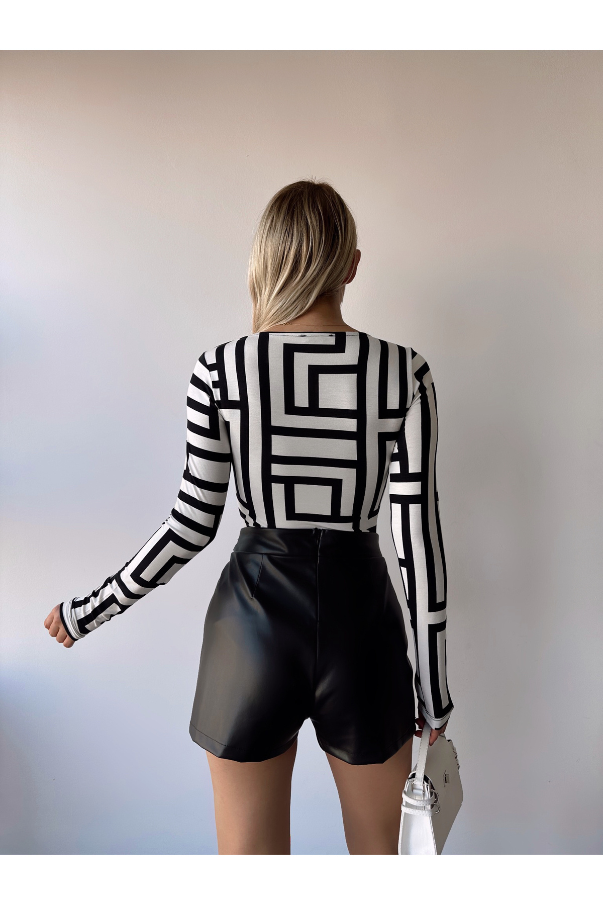 Kadın EKru Geometrik Kare Yaka Uzun Kol Viskon Bluz Kadın EKru Geometrik Kare Yaka Uzun Kol Viskon Bluz MR-1184 L
