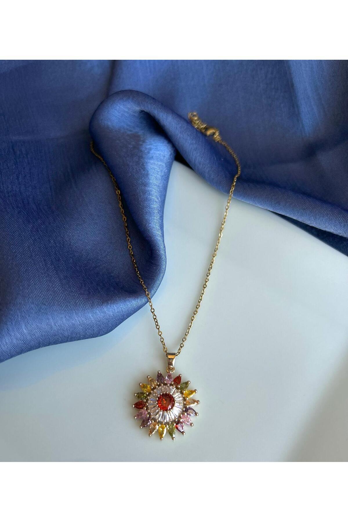 Kristal Taş Ve İnci Detay Çiçek Kolye Kristal Taş Ve İnci Detay Çiçek Kolye kolye-16 Standart