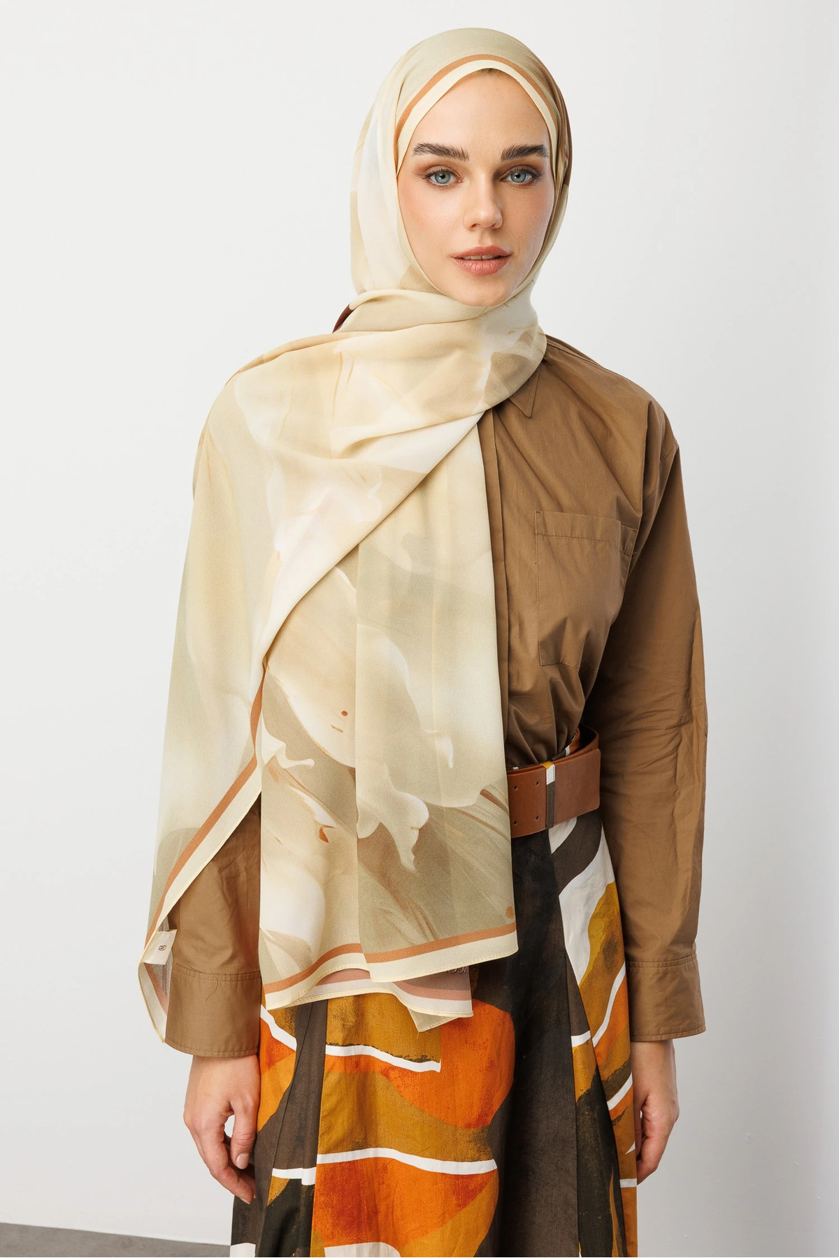 Krem Pure Desen Hebei İpek Şal Krem Pure Desen Hebei İpek Şal MC-0000-SAL-D-44 75 x 190