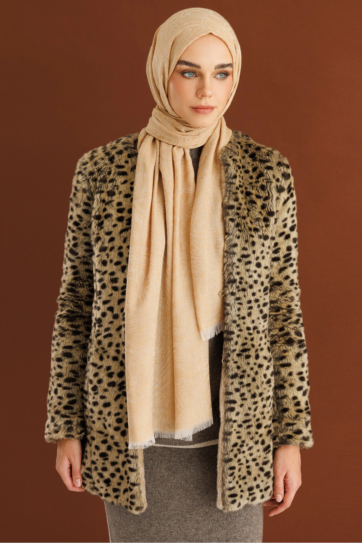 Bej Rumi Desen Yün Kaşmir Şal Bej Rumi Desen Yün Kaşmir Şal MC-0000-SAL-D-47 75 x 190