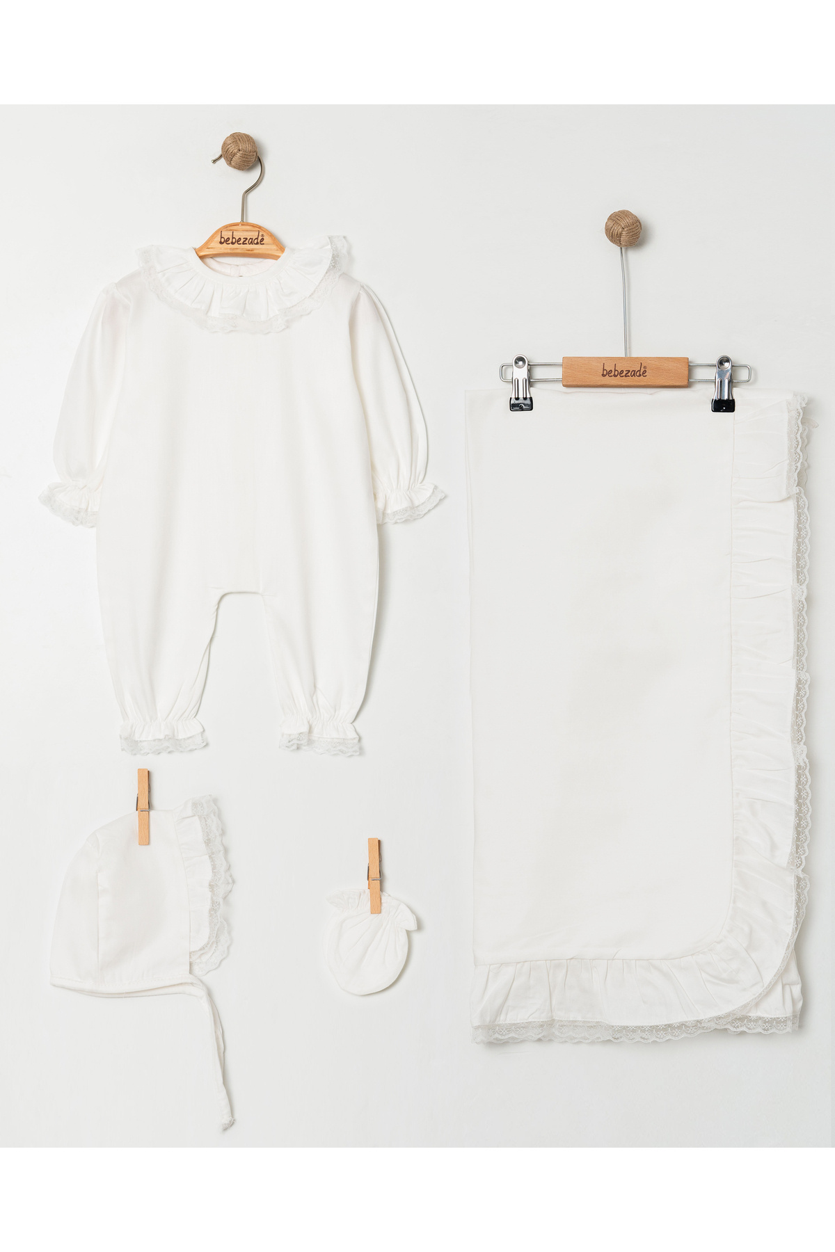 Fistolu Simli Biyeli Battaniyeli 4 Parça Bebek Takımı Fistolu Simli Biyeli Battaniyeli 4 Parça Bebek Takımı 120-3 3-6 AY