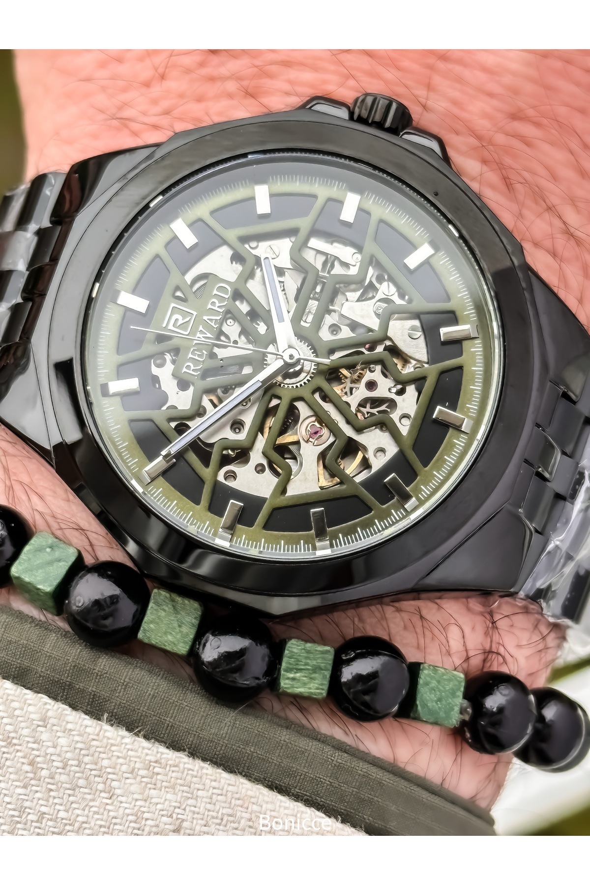 Otomatik (Pilsiz) Erkek Kol Saati,Çelik Kordon, Su Geçirmez, Gümüş - Yeşil Renk Bileklik Hediyeli Otomatik (Pilsiz) Erkek Kol Saati,Çelik Kordon, Su Geçirmez, Gümüş - Yeşil Renk Bileklik Hediyeli FRCOTMTKERK تک سایز