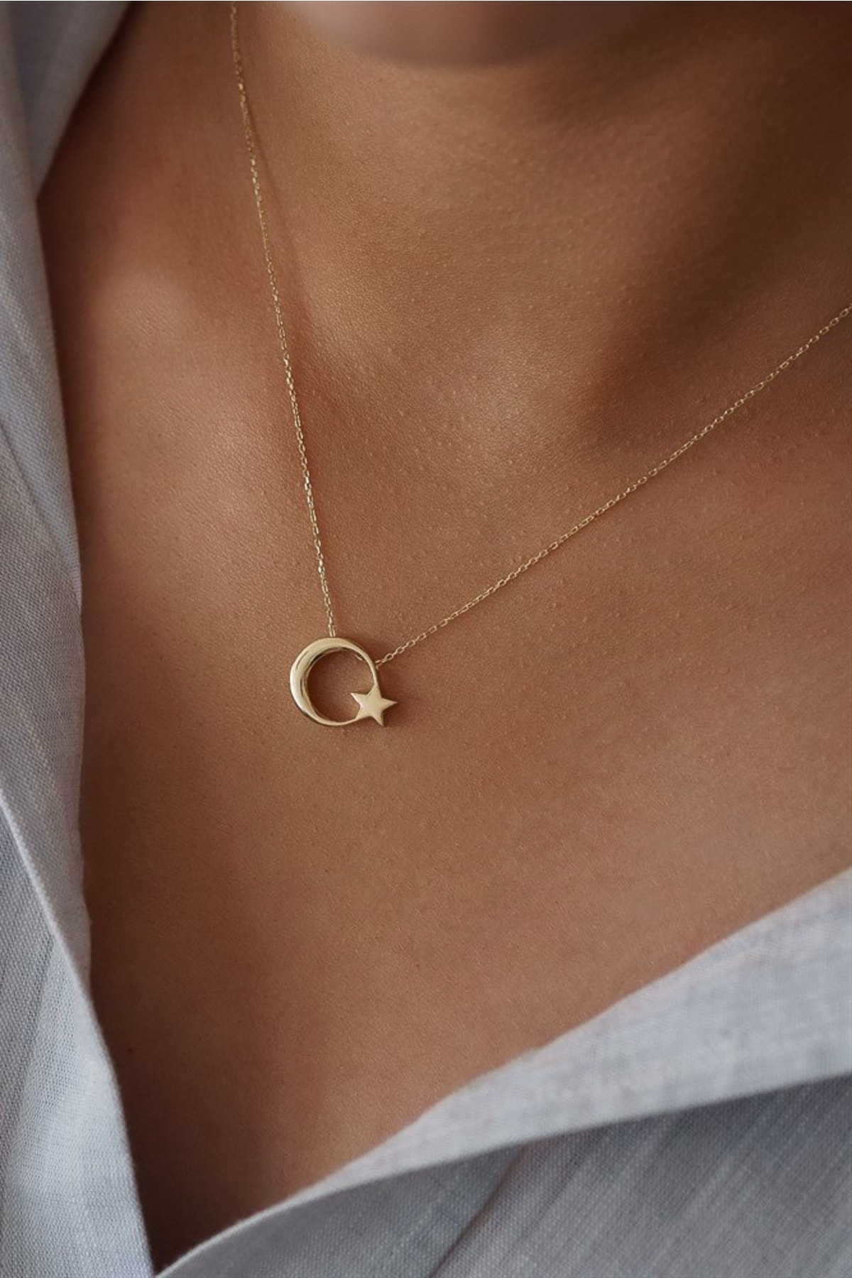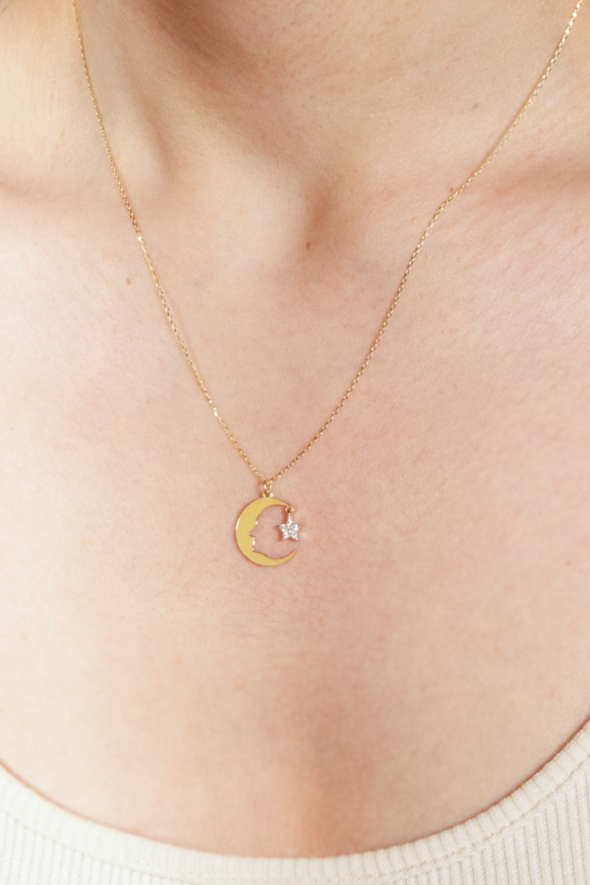Taşlı Ay Yıldız 14 Ayar Altın Kolye Taşlı Ay Yıldız 14 Ayar Altın Kolye 1GR0008712 45 cm
