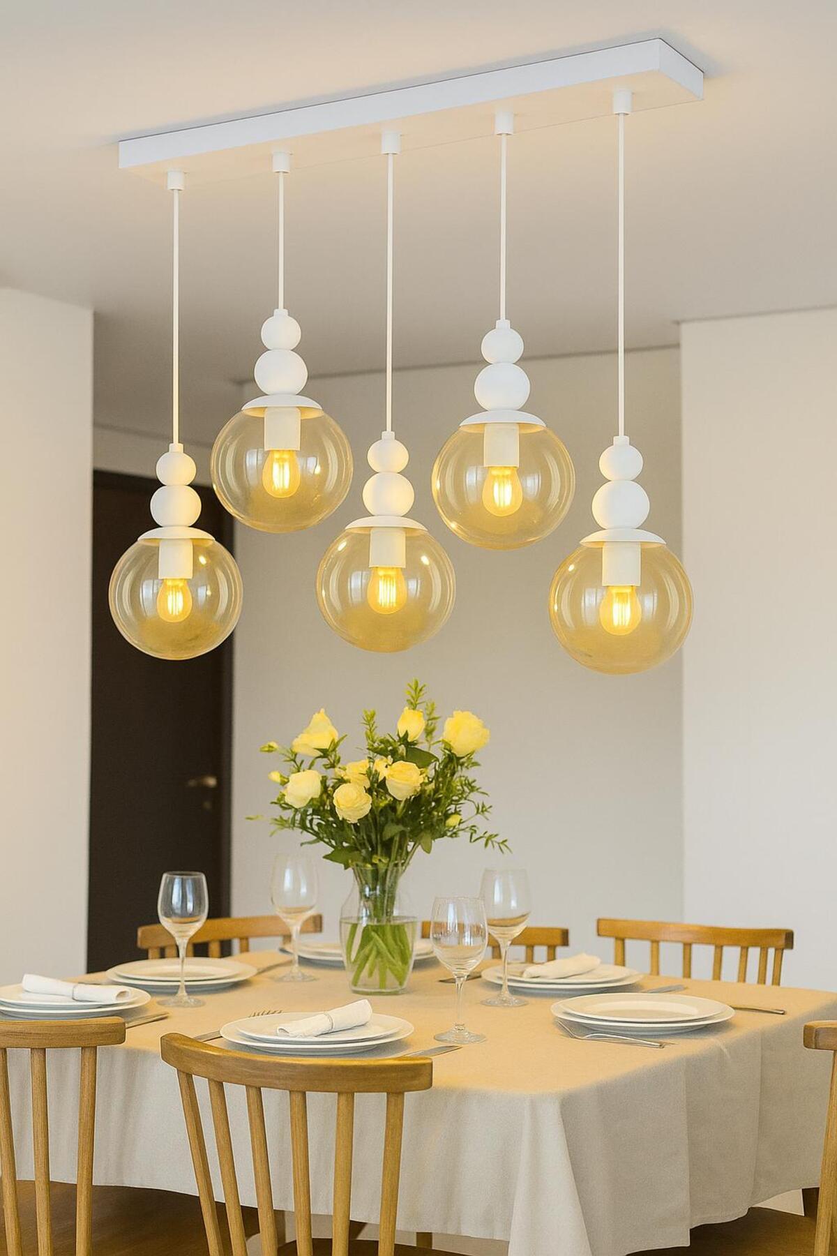 Kardan Adam 5li SIRALI BEYAZ-BAL GLOP TAVAN MONTAJLI Sarkıt Yemek Masası Üstü Camlı Salon Kardan Adam 5li SIRALI BEYAZ-BAL GLOP TAVAN MONTAJLI Sarkıt Yemek Masası Üstü Camlı Salon kardanadam5 تک سایز