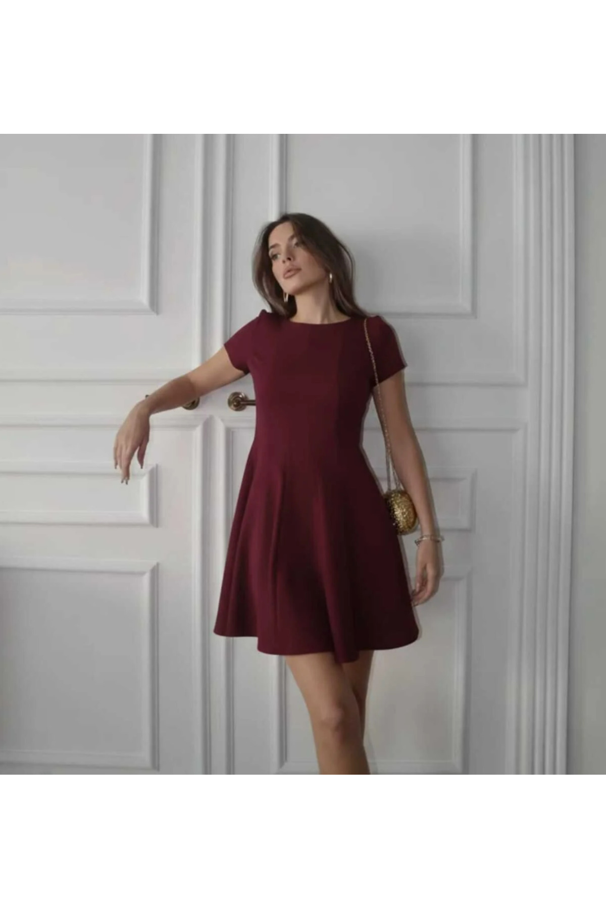 Yarım Kol Volanlı Elbise Bordo Yarım Kol Volanlı Elbise Bordo 25SWS6963 XL