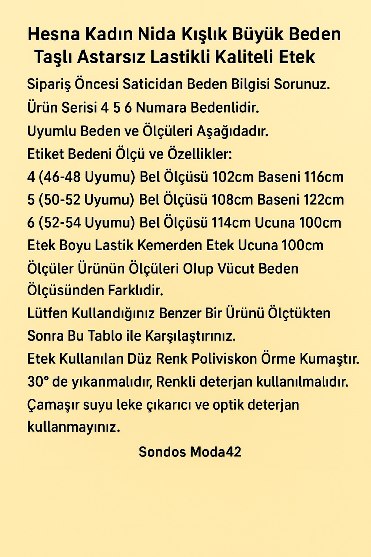 Kadın Nida Kışlık Büyük Beden Taşlı Astarsız Latikli Kaliteli Etek Kadın Nida Kışlık Büyük Beden Taşlı Astarsız Latikli Kaliteli Etek E-6058 52-54