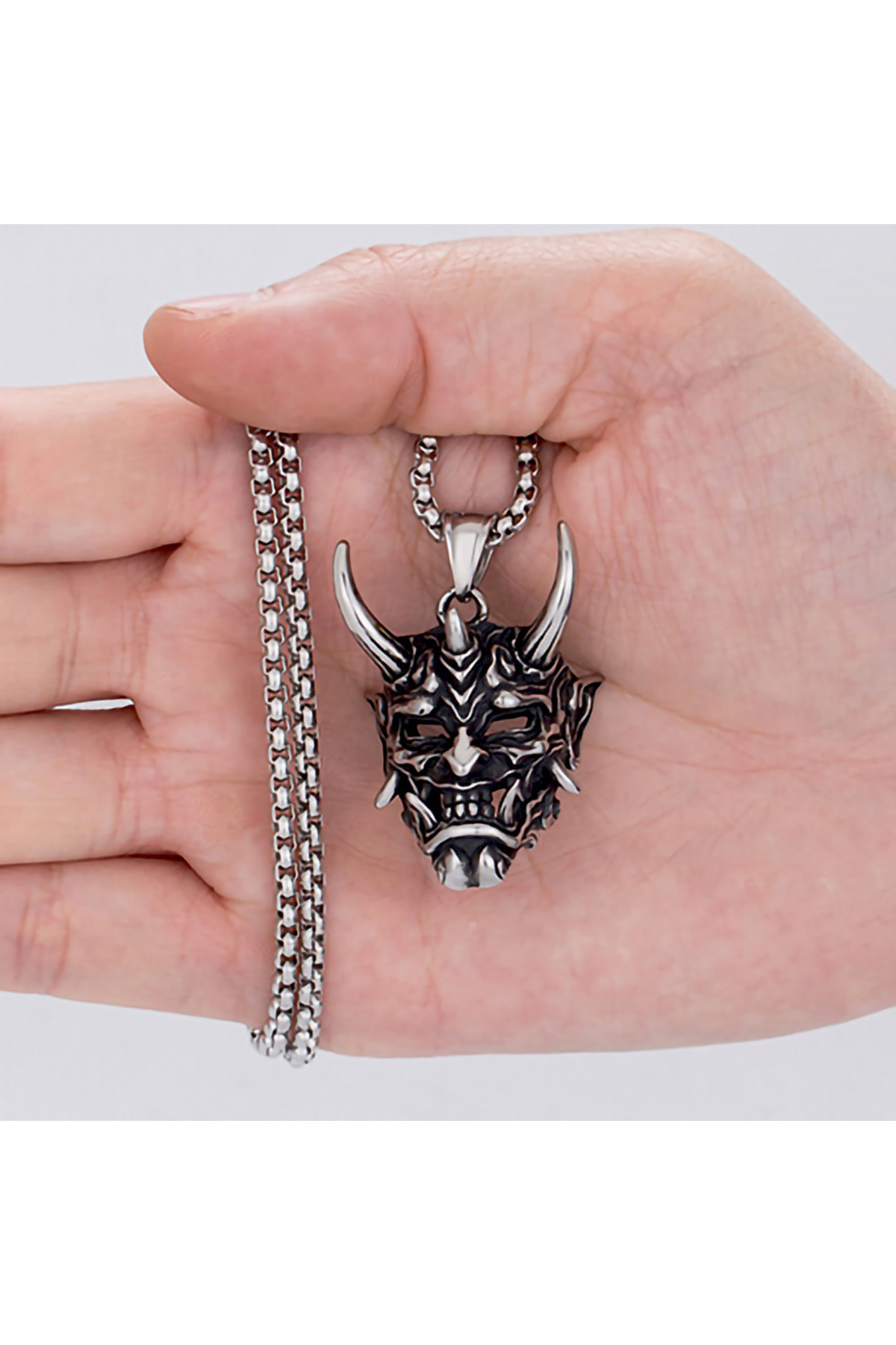 Hannya Maske Tasarım S+ Kalite 316L Paslanmaz Kararmaz Çelik Kolye Hannya Maske Tasarım S+ Kalite 316L Paslanmaz Kararmaz Çelik Kolye NSS00002277 60 cm