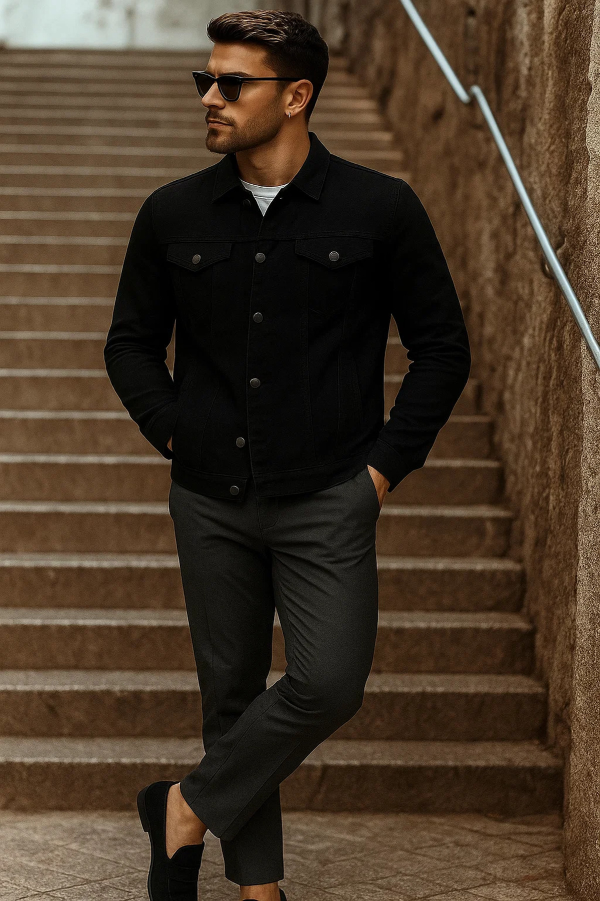 Erkek Mevsimlik Basic Günlük Trend Siyah Kot Ceket Erkek Mevsimlik Basic Günlük Trend Siyah Kot Ceket Ayna-1-Kotceket 2XL