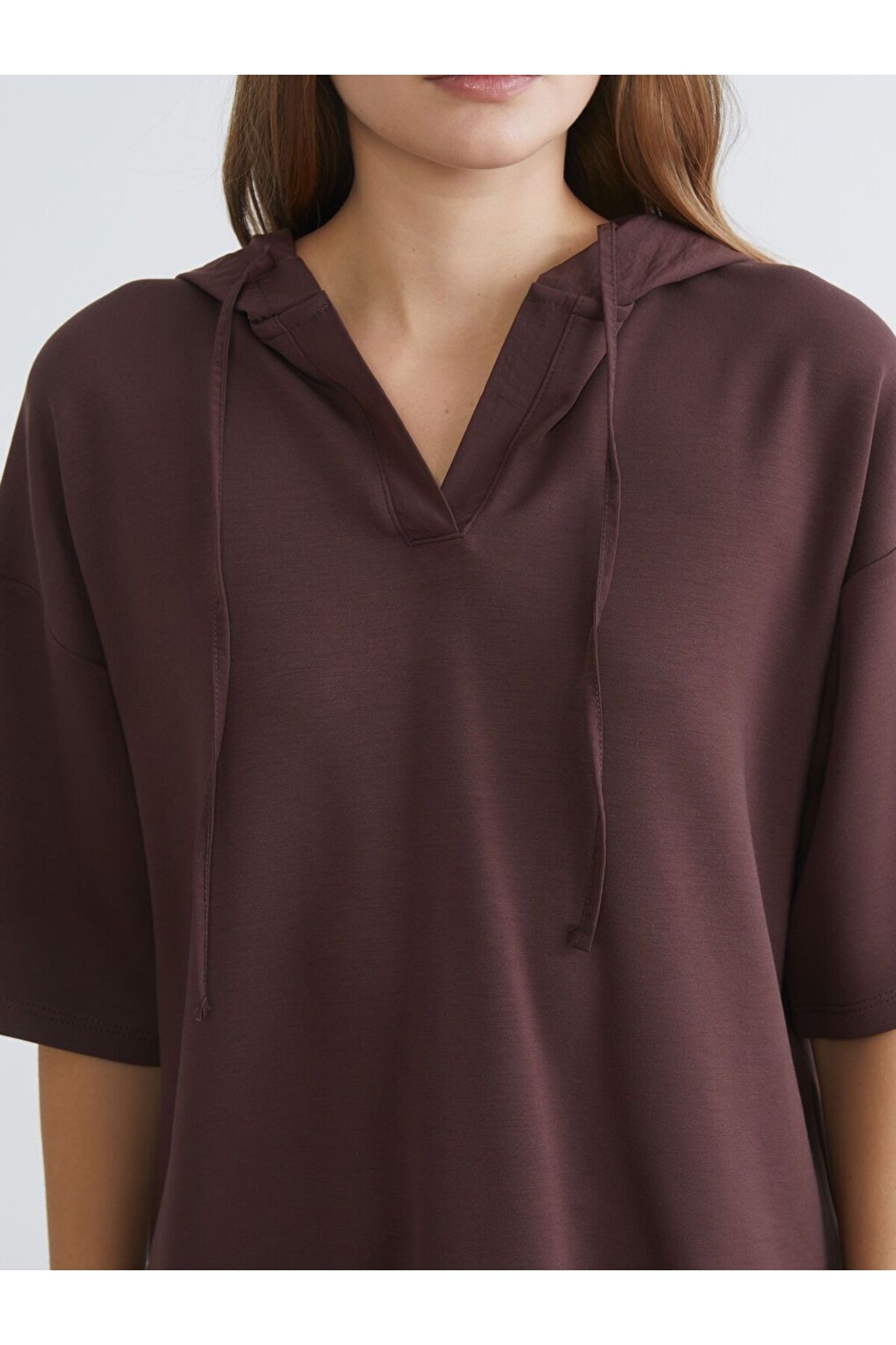 LCWAIKIKI Basic Düz Kısa Kollu Kadın Hoodie LCWAIKIKI Basic Düz Kısa Kollu Kadın Hoodie W5K504Z8 3XL