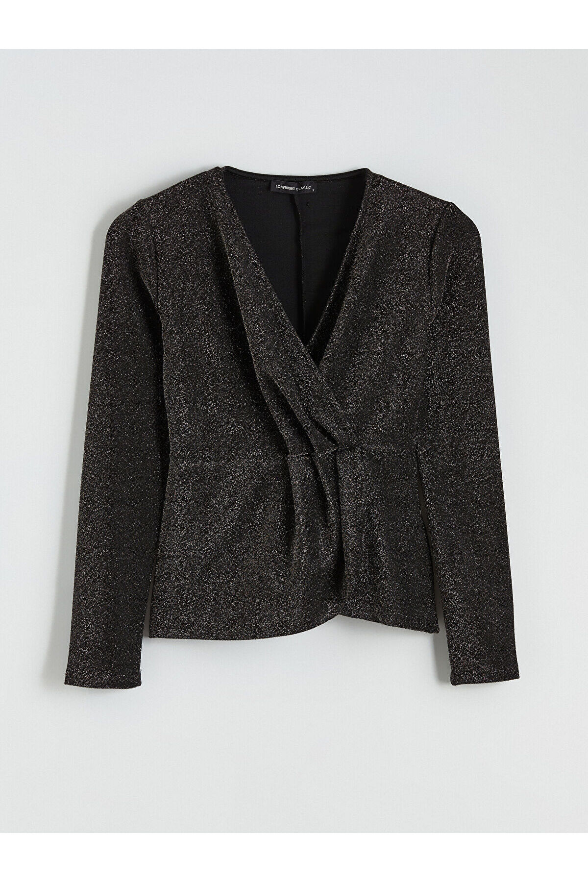 LCWAIKIKI Basic Kruvaze Yaka Parlak Görünümlü Büzgülü Bluz LCWAIKIKI Basic Kruvaze Yaka Parlak Görünümlü Büzgülü Bluz W5ML02Z8 4XL