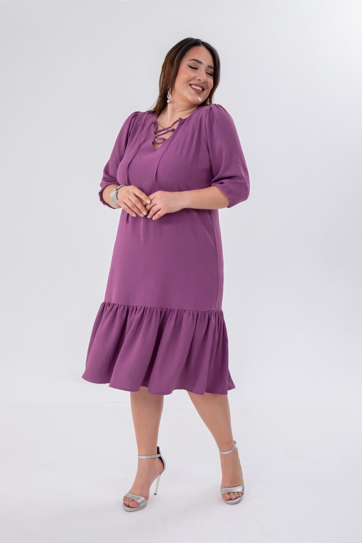 Kadın Büyük Beden Yaka Bağçıklı Uzun Mor Elbise Kadın Büyük Beden Yaka Bağçıklı Uzun Mor Elbise 333795 54