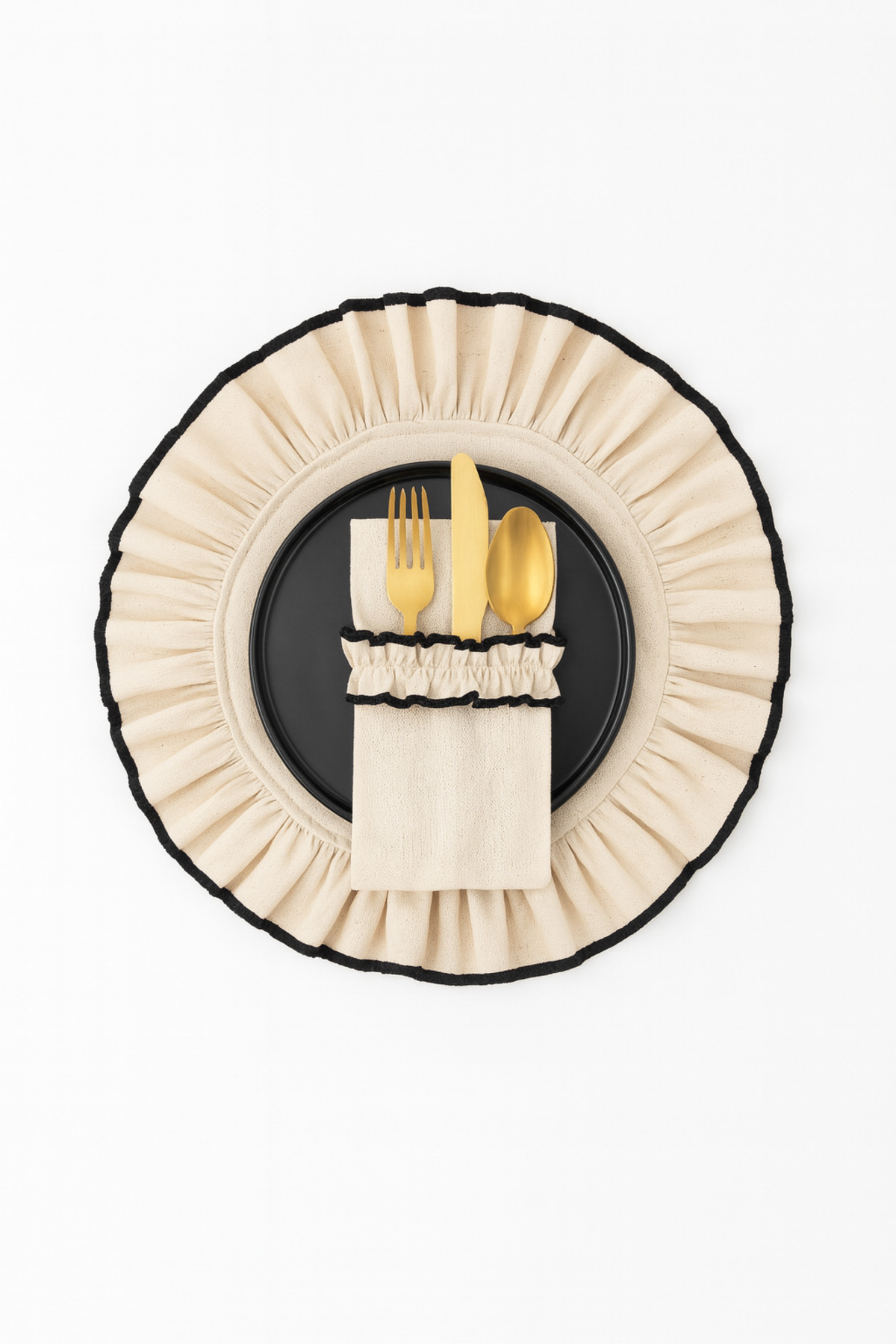 6’lı Fırfırlı Ham Keten Amerikan Servis ve Kaşıklık Seti | Siyah Biyeli / 12 Parça 6’lı Fırfırlı Ham Keten Amerikan Servis ve Kaşıklık Seti | Siyah Biyeli / 12 Parça T0904TKST62 تک سایز