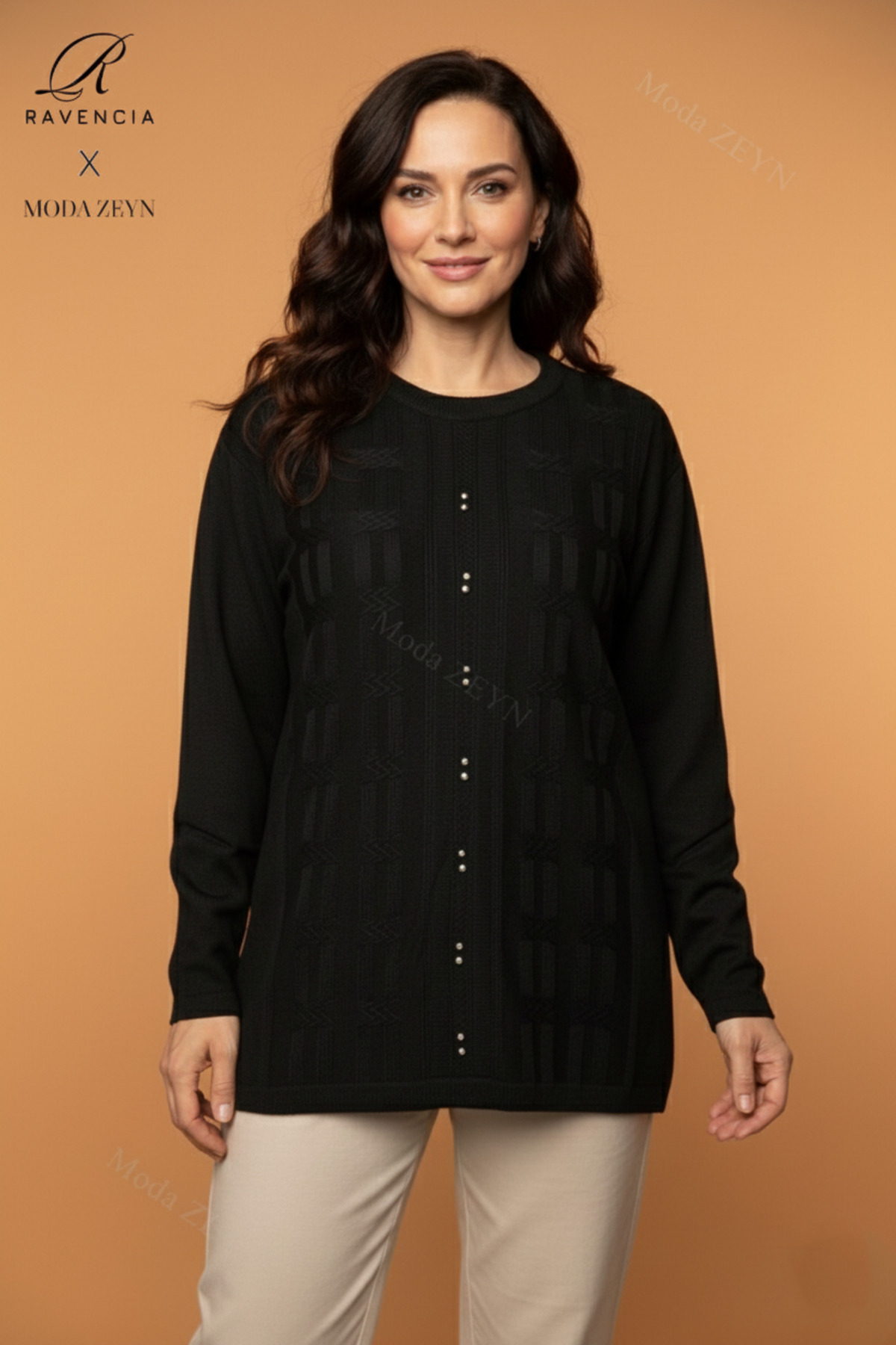 Kadın Bisiklet Yaka Likralı Desenli Triko Lacivert Anne Kazak Kadın Bisiklet Yaka Likralı Desenli Triko Lacivert Anne Kazak OMT001 XL