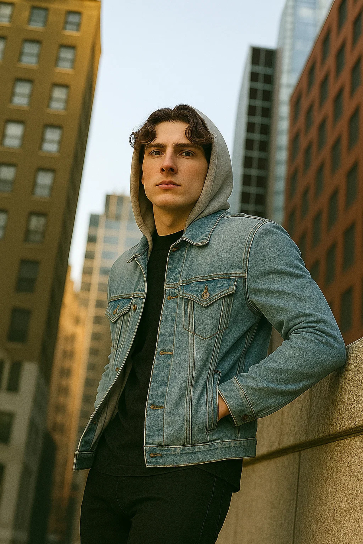 Erkek Mevsimlik Kapşonlu Buz Mavi Bol Kot Mont Erkek Mevsimlik Kapşonlu Buz Mavi Bol Kot Mont Mont-861DMJG-1 2XL