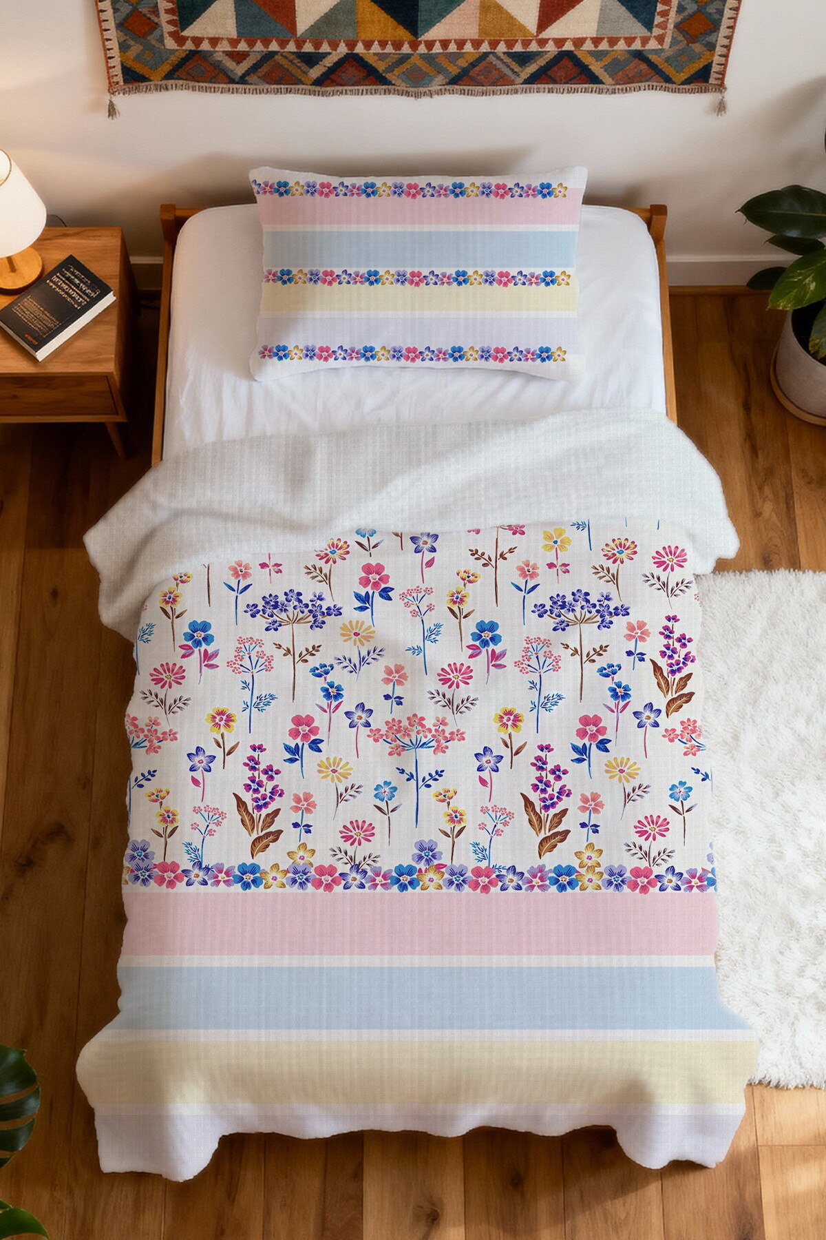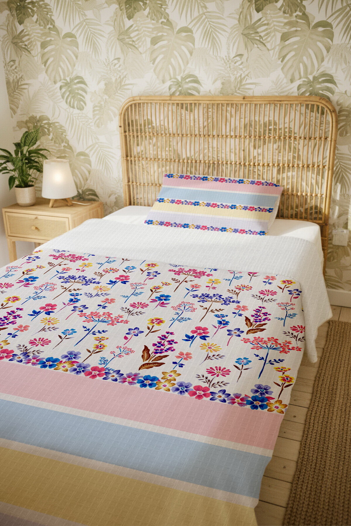 %100 Pamuk Neşeli Bahçe Desenli Tek Kişilik Pike Seti %100 Pamuk Neşeli Bahçe Desenli Tek Kişilik Pike Seti evpamuk055 تک سایز