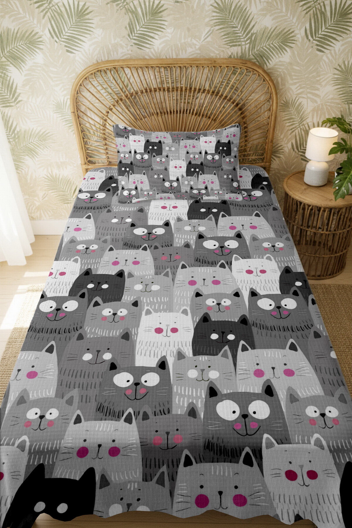 %100 Pamuk Gri Kediler Desenli Tek Kişilik Pike Seti %100 Pamuk Gri Kediler Desenli Tek Kişilik Pike Seti evpamuk0220 تک سایز