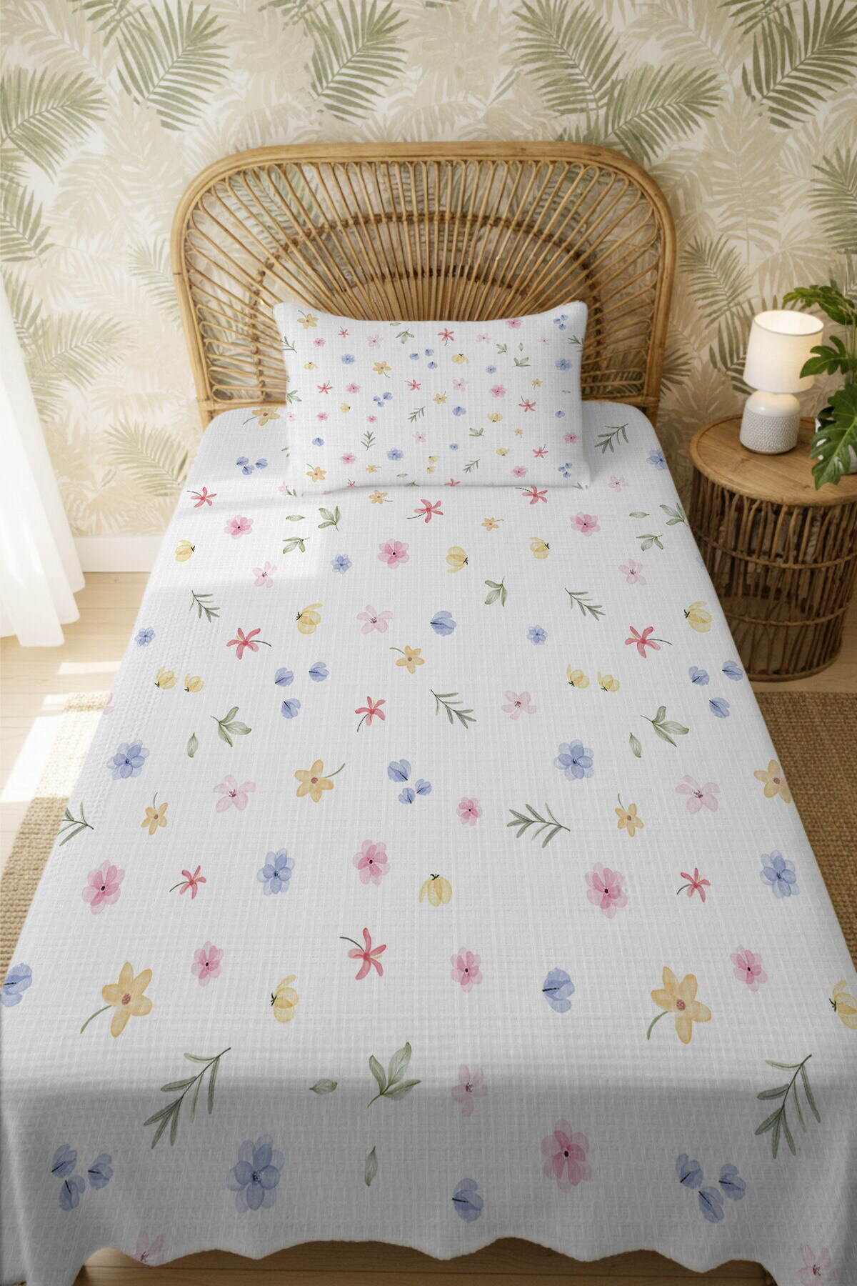 %100 Pamuk Renkli Pastel Çiçekler Desenli Tek Kişilik Pike Seti %100 Pamuk Renkli Pastel Çiçekler Desenli Tek Kişilik Pike Seti evpamuk0357 تک سایز