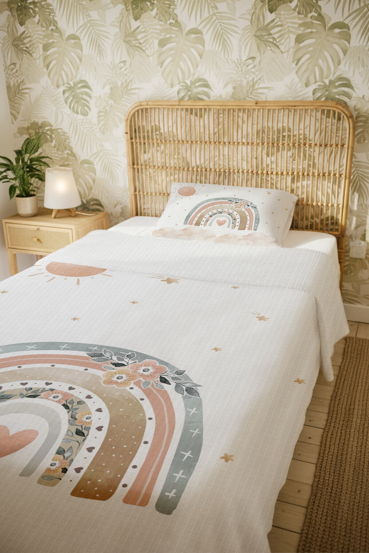 %100 Pamuk Çiçekten Gökkuşağı Desenli Tek Kişilik Pike Seti %100 Pamuk Çiçekten Gökkuşağı Desenli Tek Kişilik Pike Seti evpamuk0387 تک سایز