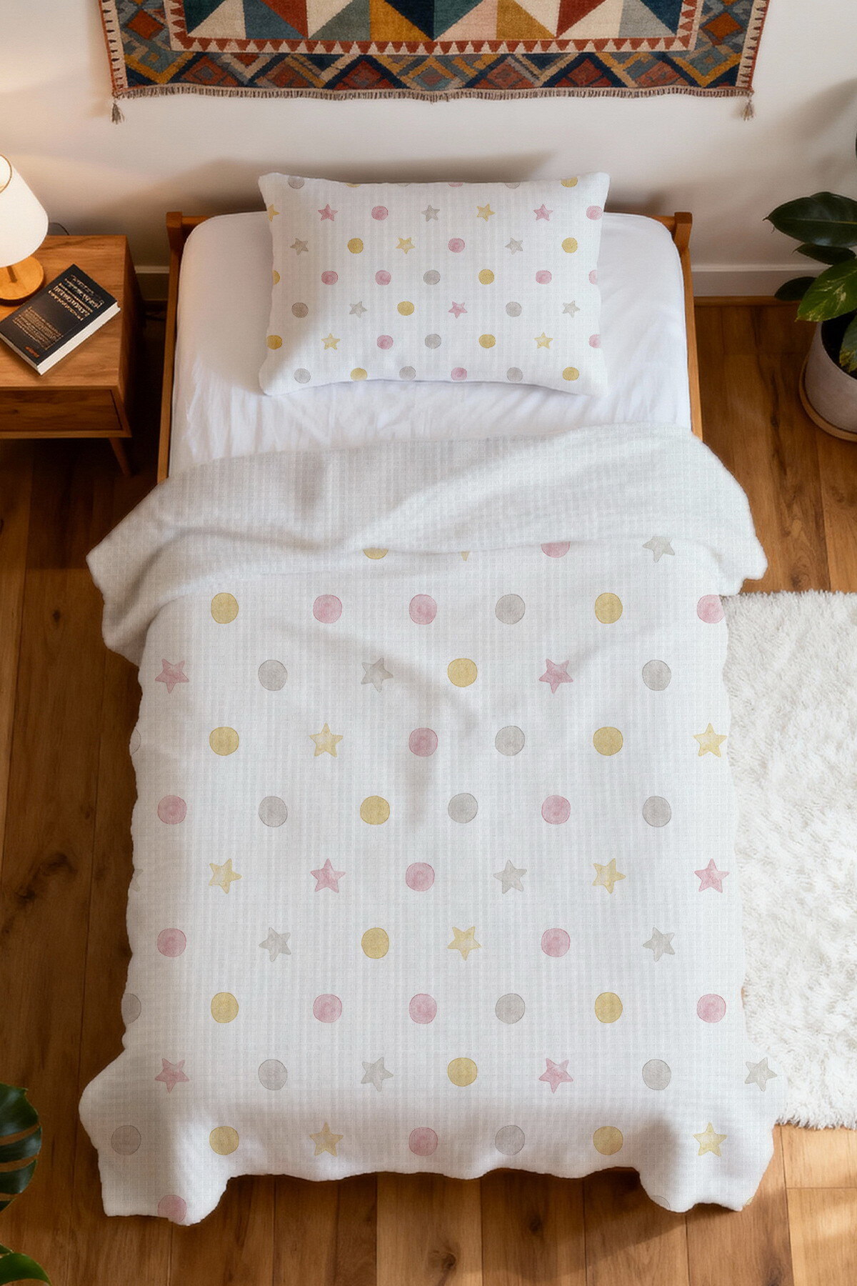 %100 Pamuk Yıldız ve Puantiye Yağmuru Desenli Tek Kişilik Pike Seti %100 Pamuk Yıldız ve Puantiye Yağmuru Desenli Tek Kişilik Pike Seti evpamuk0108 تک سایز