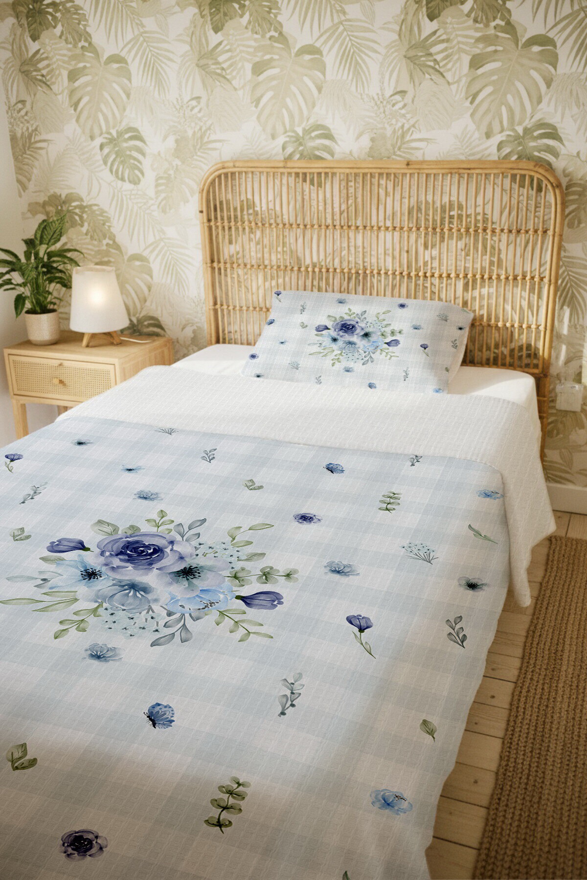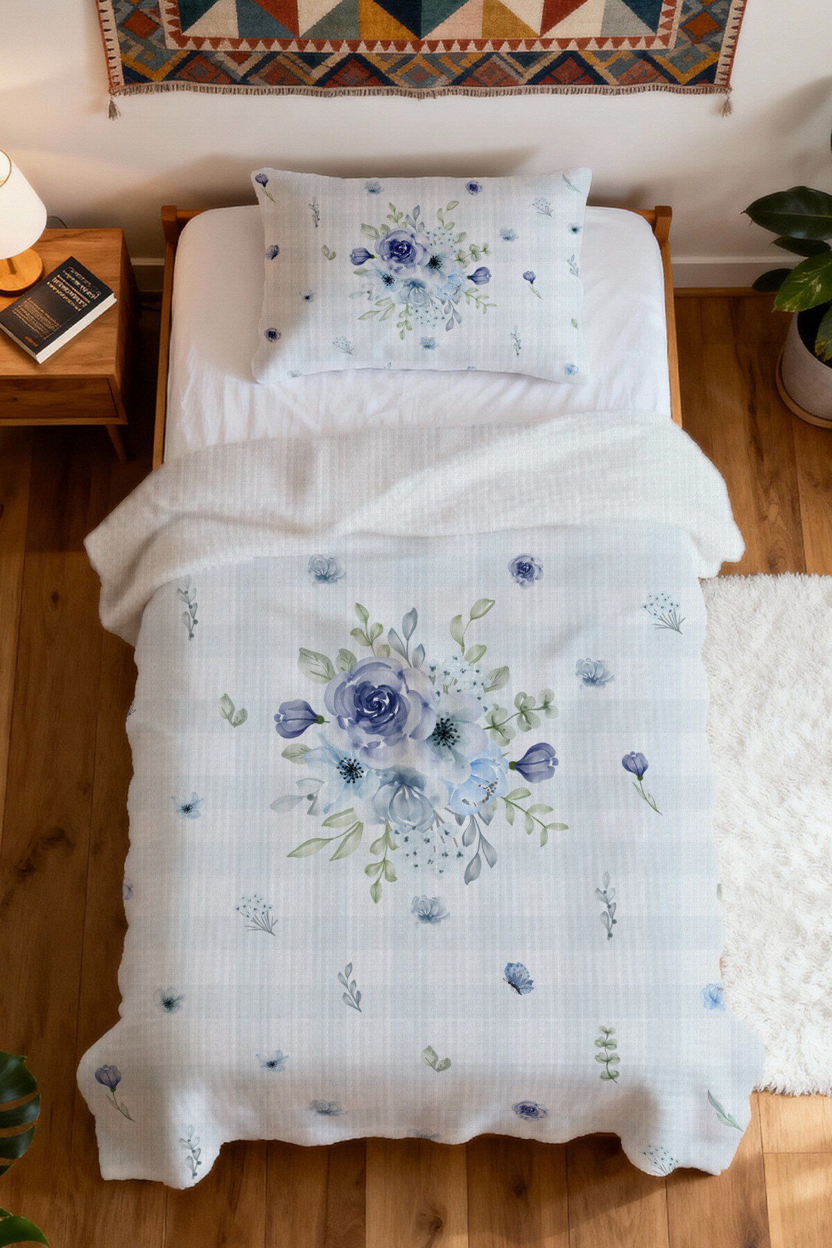 %100 Pamuk Mavi Çiçek Buketi Desenli Tek Kişilik Pike Seti %100 Pamuk Mavi Çiçek Buketi Desenli Tek Kişilik Pike Seti evpamuk078 تک سایز