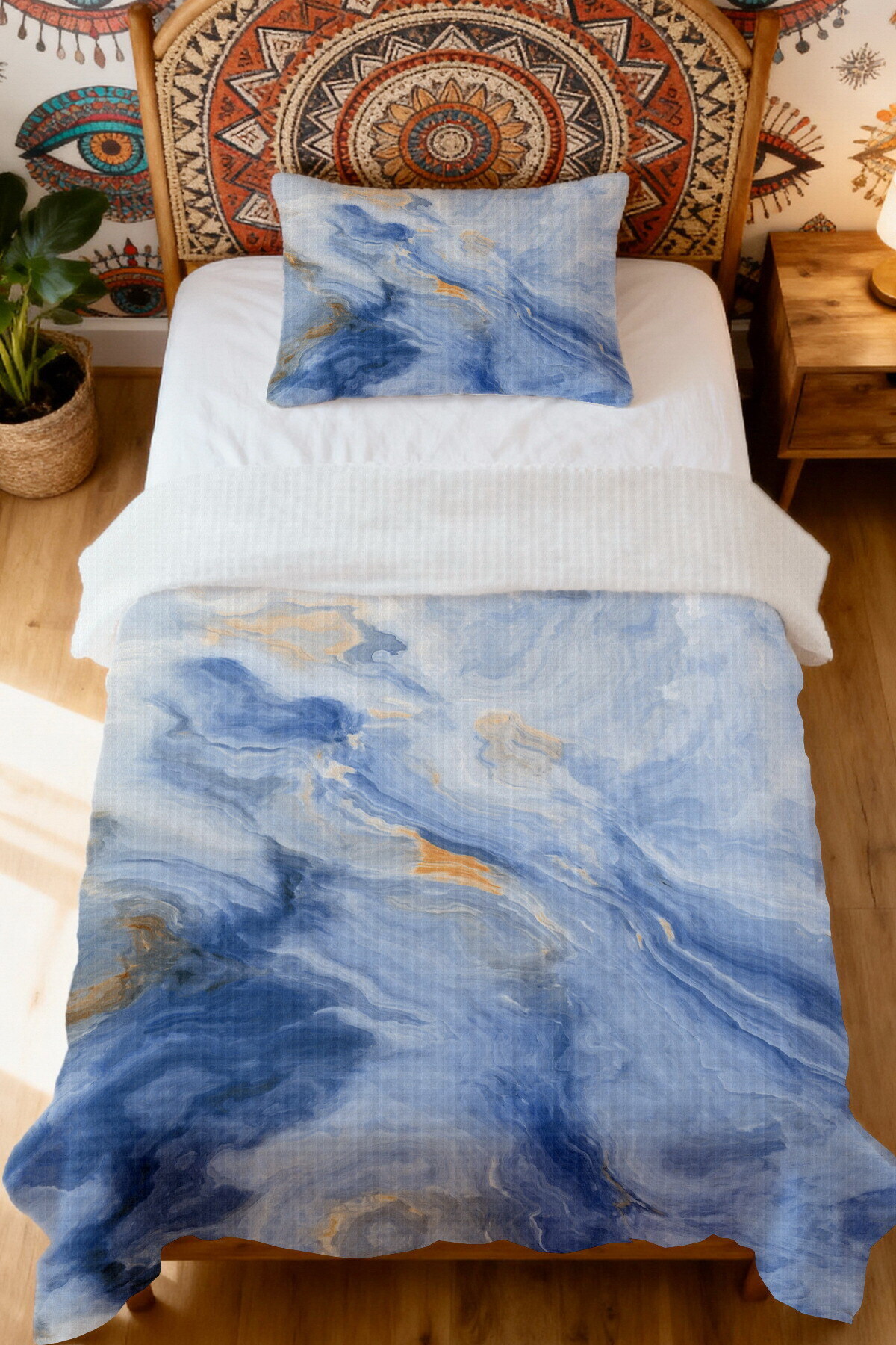 %100 Pamuk Mavi Tonlarda Mermer Desenli Tek Kişilik Pike Seti %100 Pamuk Mavi Tonlarda Mermer Desenli Tek Kişilik Pike Seti evpamuk0503 تک سایز