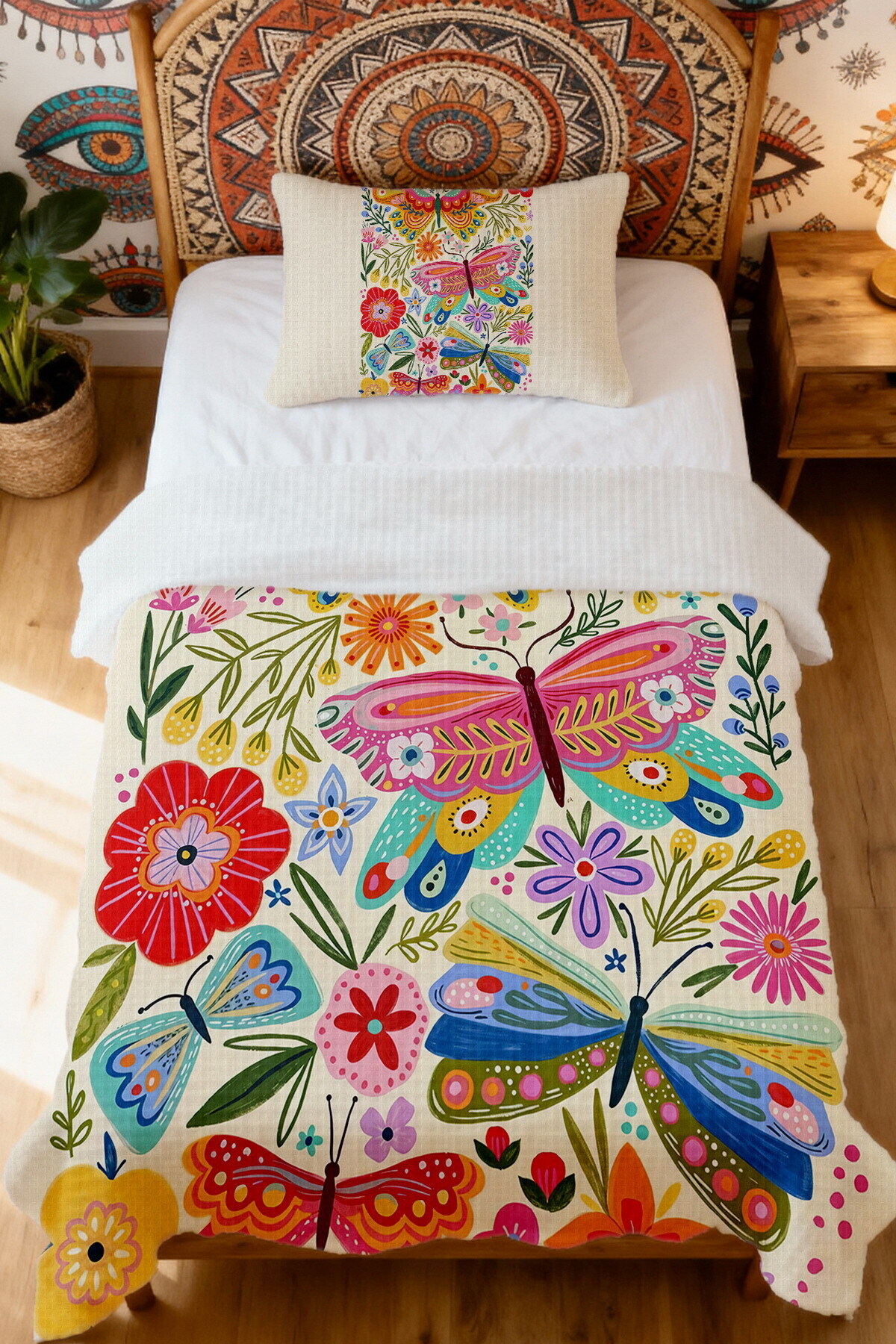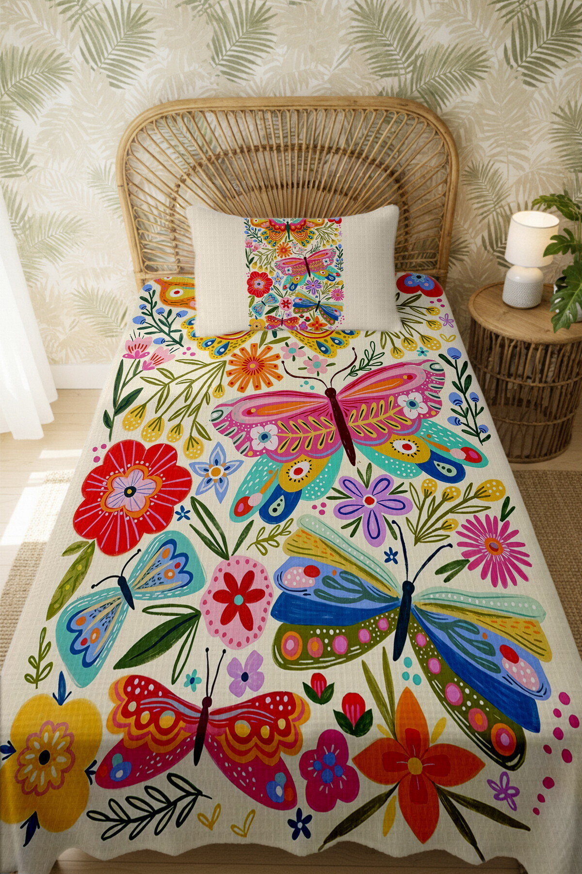 %100 Pamuk Hippie Renkli Kelebekler Desenli Tek Kişilik Pike Seti %100 Pamuk Hippie Renkli Kelebekler Desenli Tek Kişilik Pike Seti evpamuk0341 تک سایز
