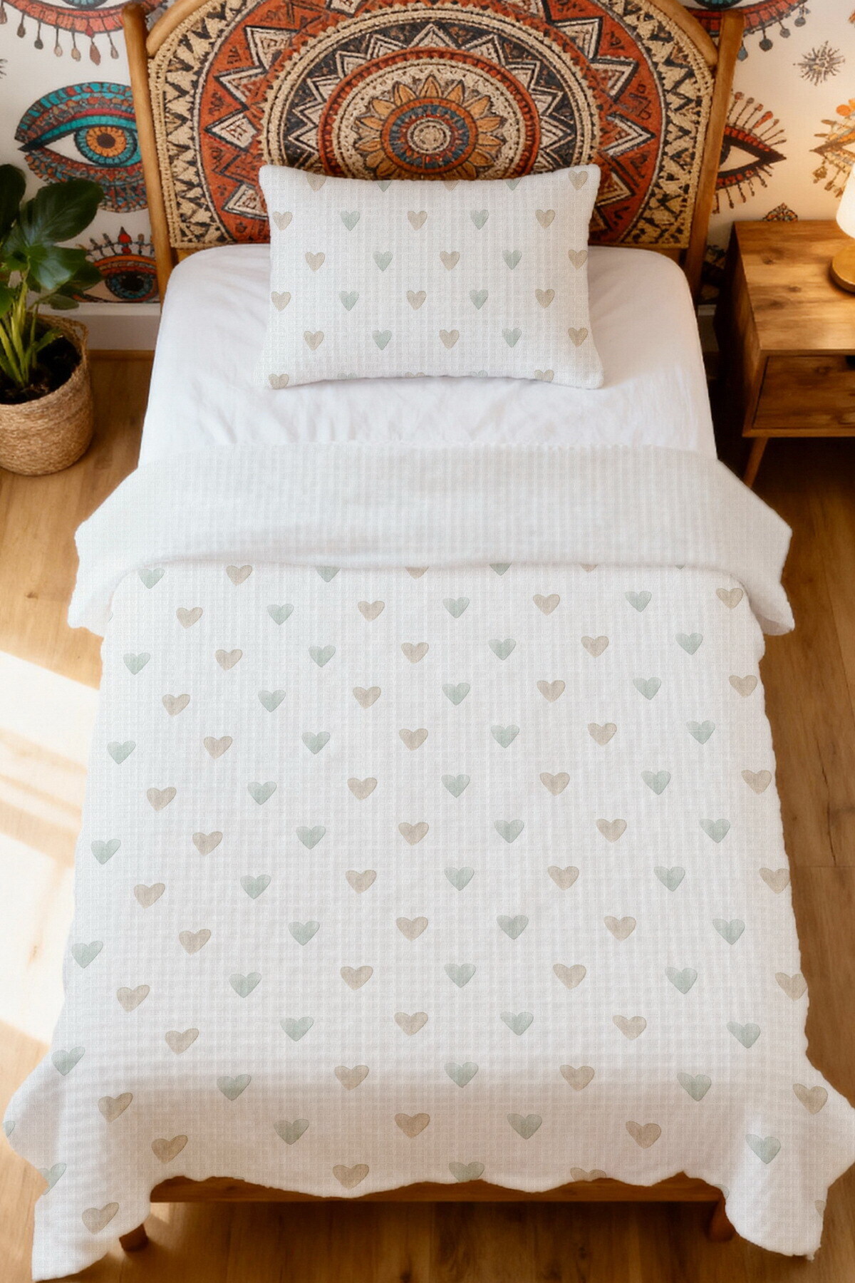 %100 Pamuk Narin Kalpler Desenli Tek Kişilik Pike Seti %100 Pamuk Narin Kalpler Desenli Tek Kişilik Pike Seti evpamuk0100 تک سایز