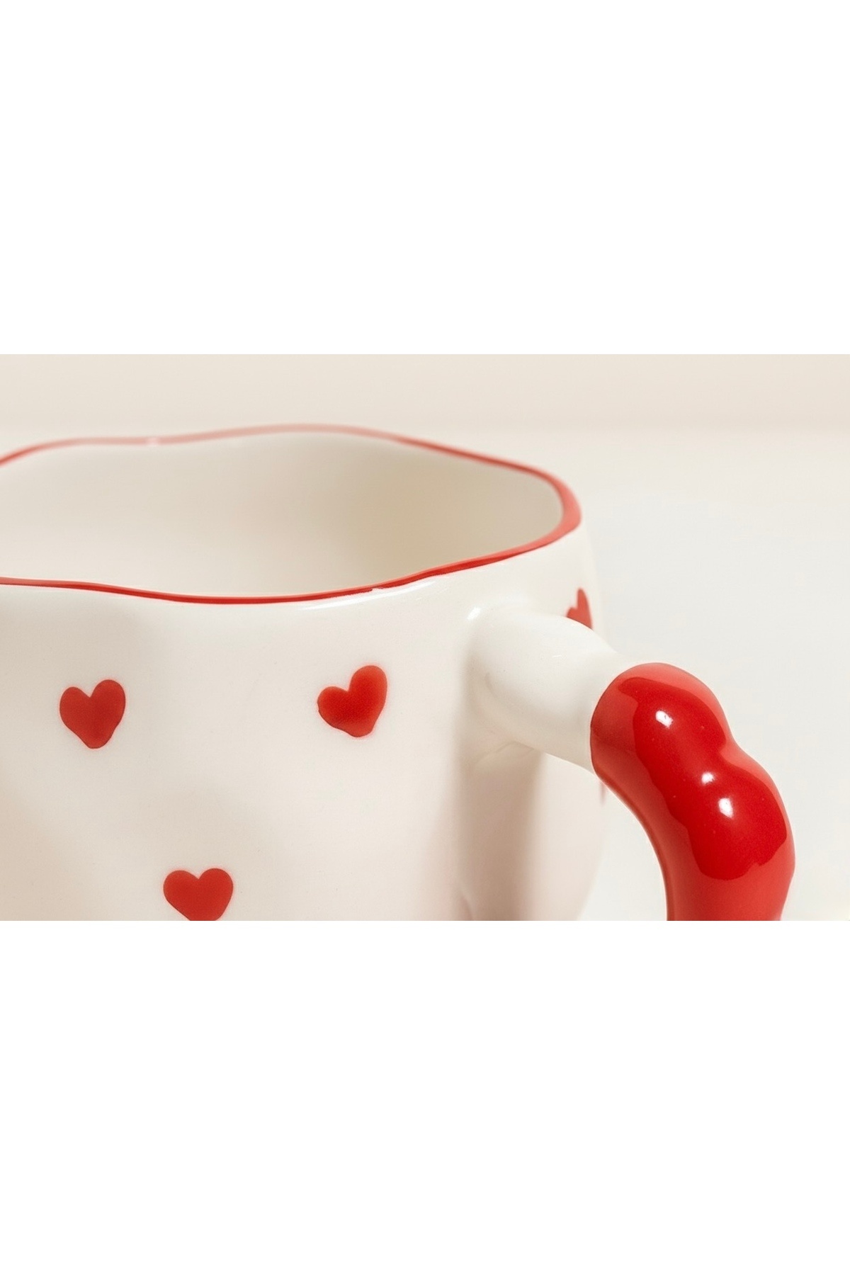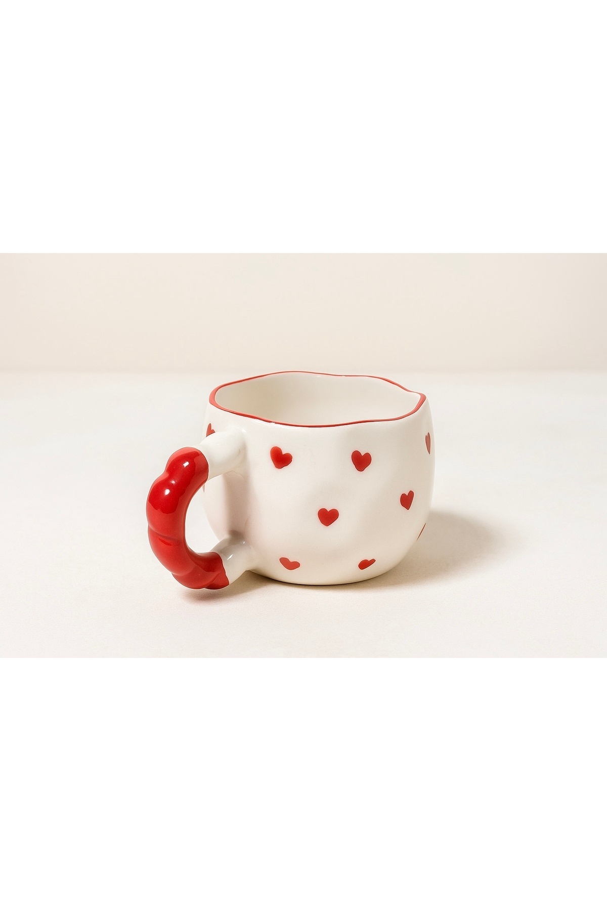 Kalp Desenli El Yapımı Seramik Kupa – Kırmızı Kulplu Krem Kahve Kupası – Hediye Kupa – Kalp Desenli El Yapımı Seramik Kupa – Kırmızı Kulplu Krem Kahve Kupası – Hediye Kupa – çağ29 تک سایز