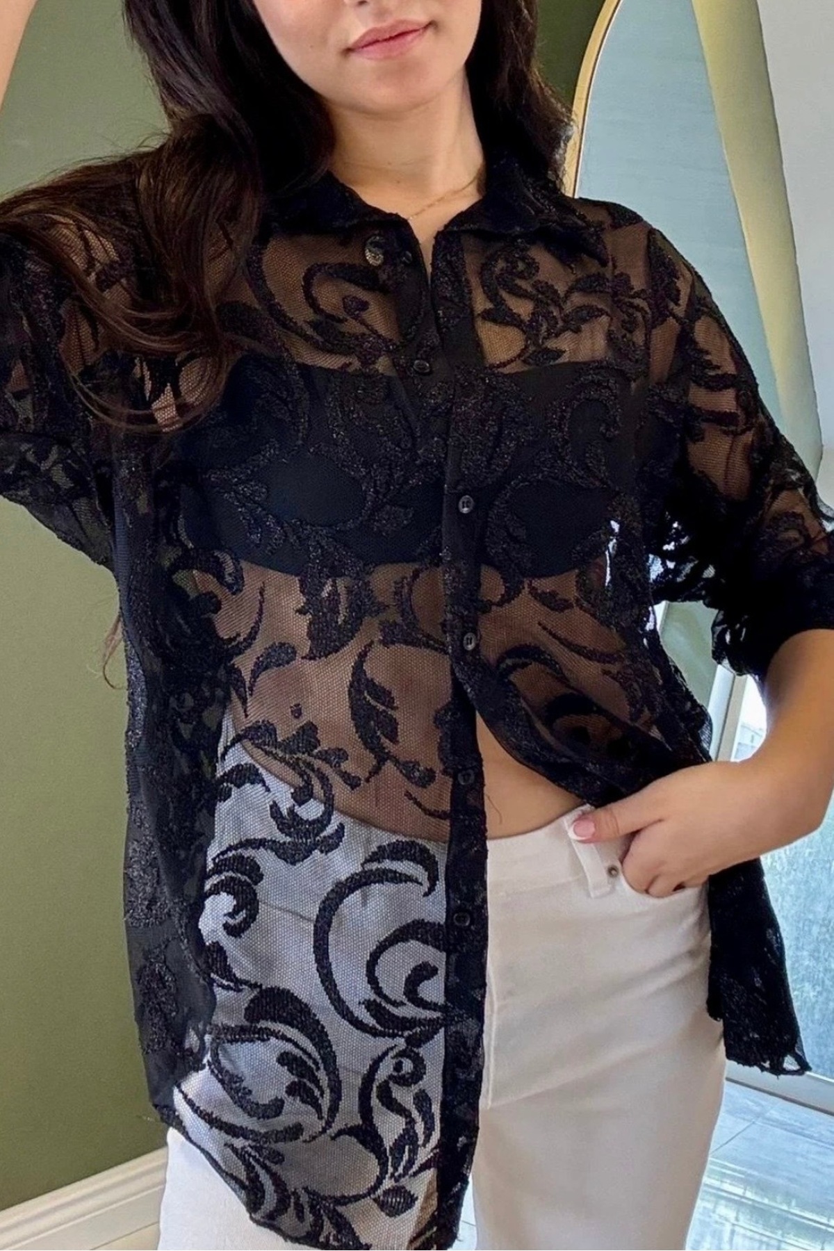 Oversize Dantel Tül Gömlek D5903 Oversize Dantel Tül Gömlek D5903 D59035000NJB Standart