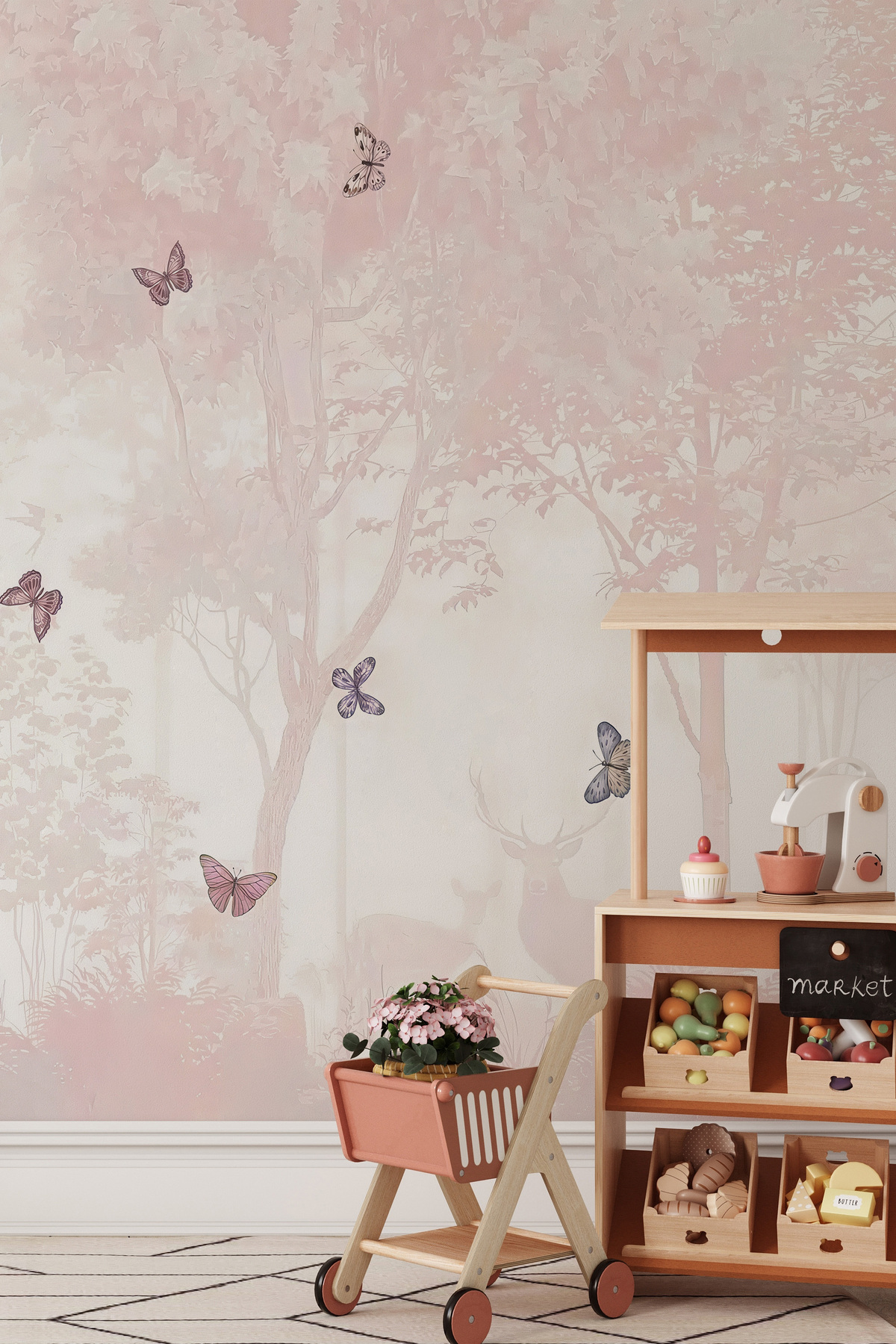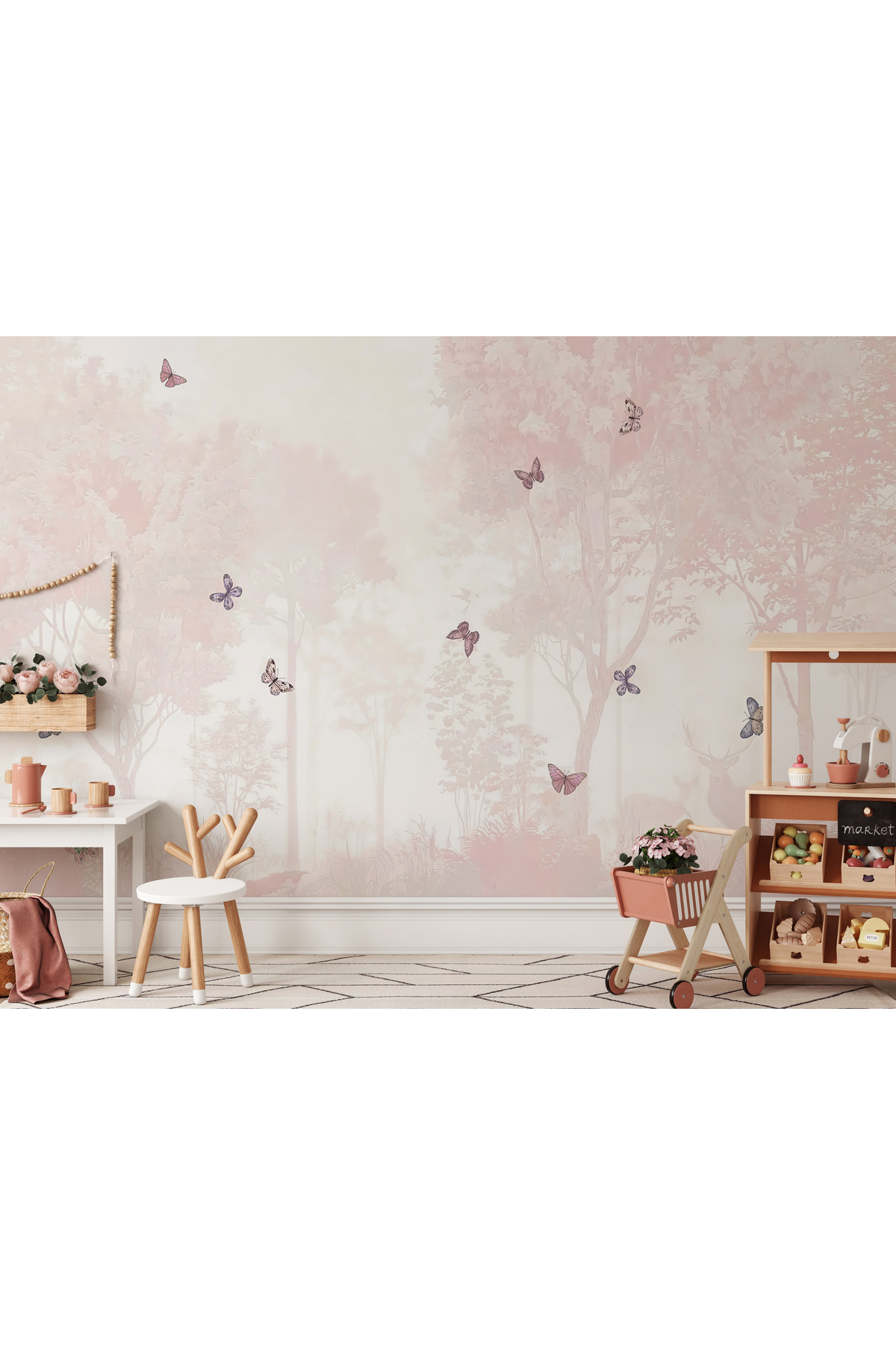 Pastel Pembe Sisli Orman Duvar Kağıdı Poster | Mor Kelebek Desenli Kız Bebek Çocuk Odası Dekoru Pastel Pembe Sisli Orman Duvar Kağıdı Poster | Mor Kelebek Desenli Kız Bebek Çocuk Odası Dekoru BF1089-Kid_24738-3-1 350 x 240
