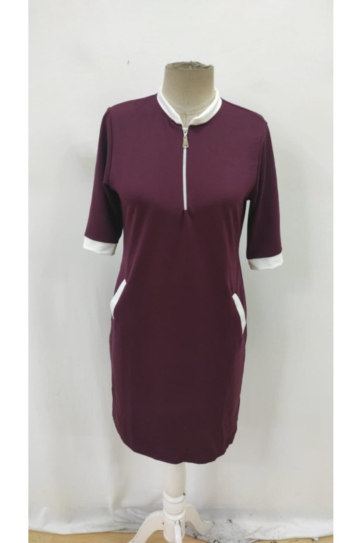Kadın Kısa Kollu Yakadan Fermuarlı Cepli Yandan Yırtmaçlı Viskon Elbise Kadın Kısa Kollu Yakadan Fermuarlı Cepli Yandan Yırtmaçlı Viskon Elbise 172791 2XL-3XL