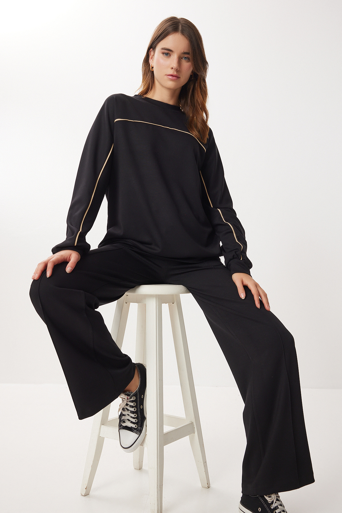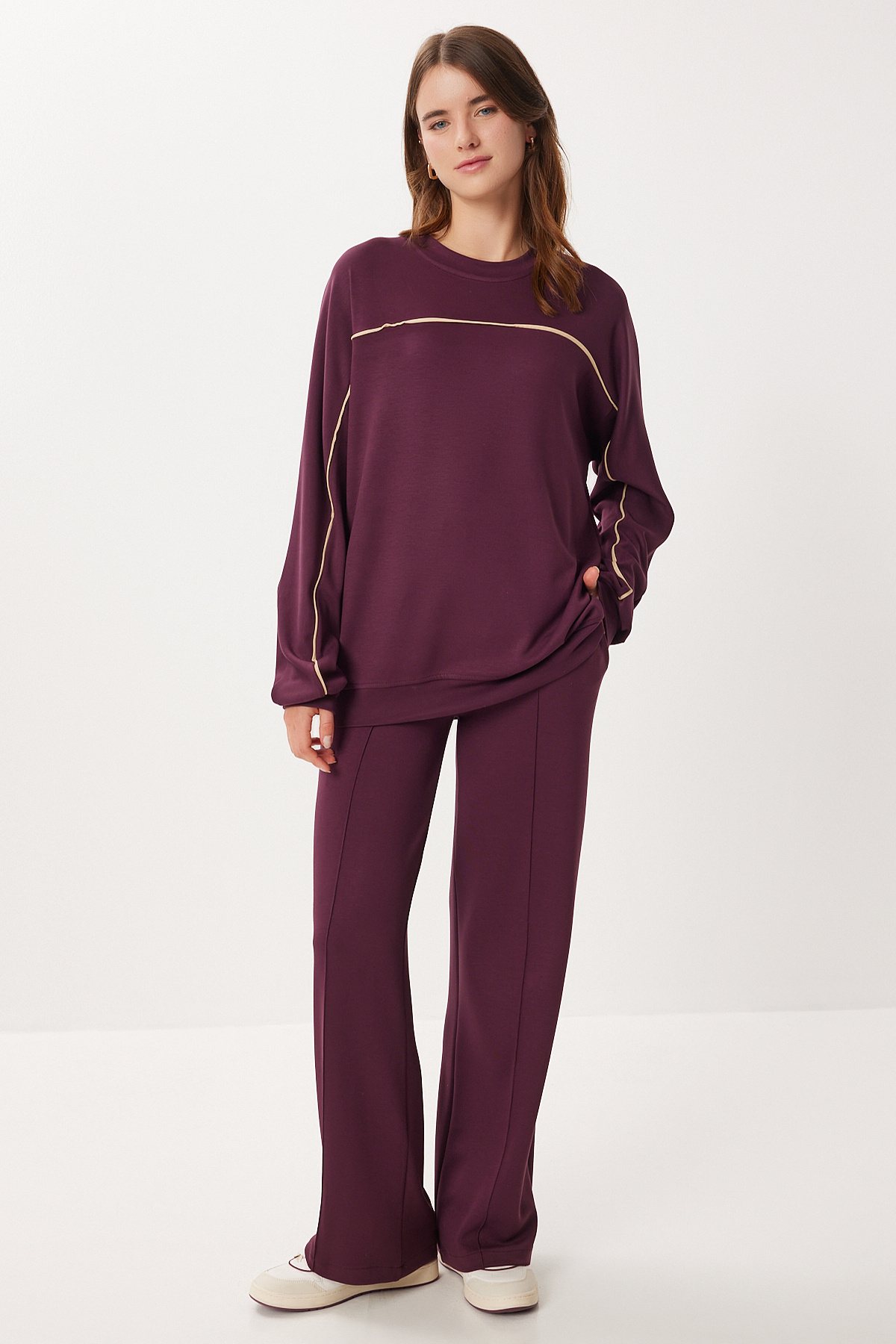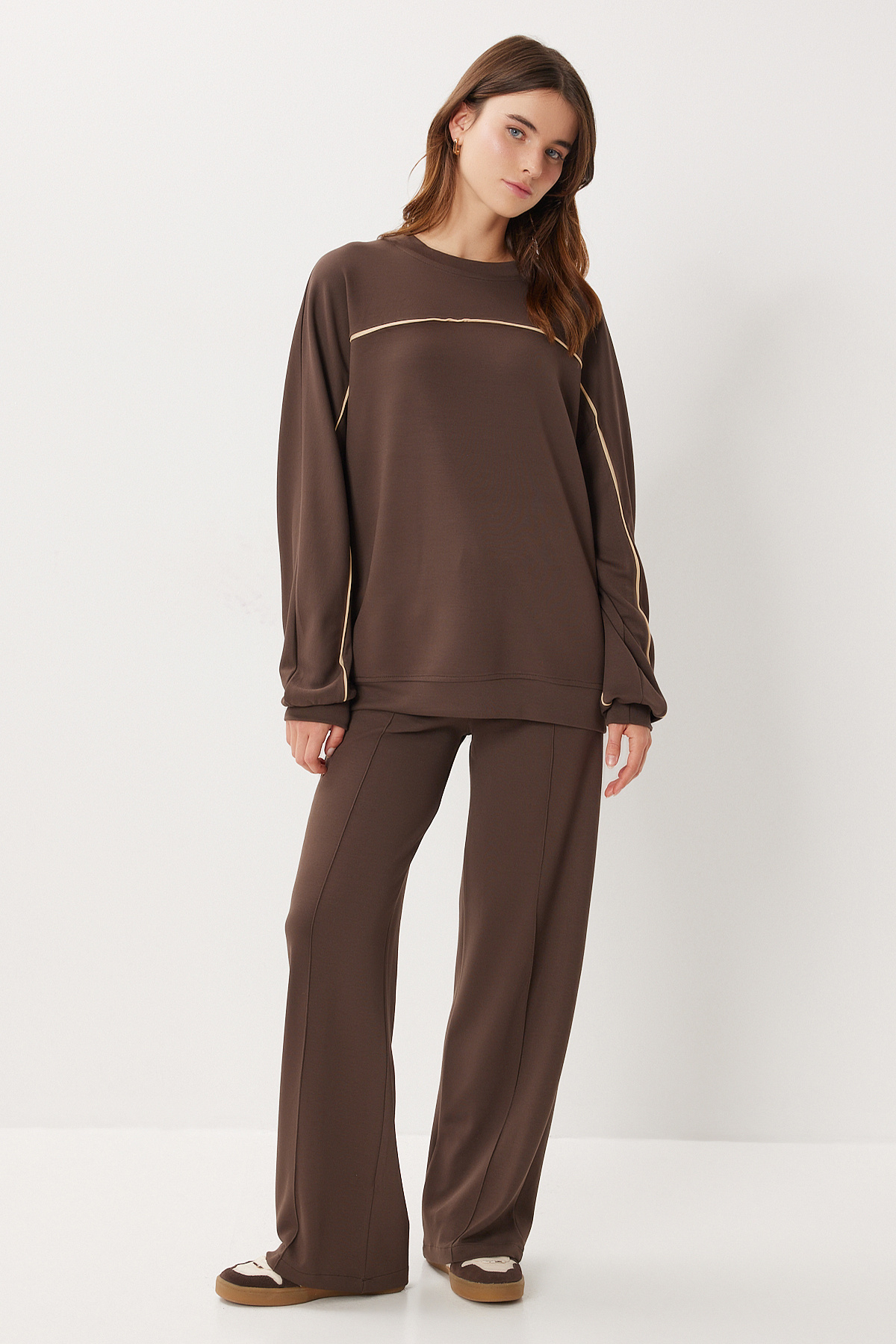 Kontrast Şeritli Modal Alt-Üst Takım LCI0062 KAHVERENGİ Kontrast Şeritli Modal Alt-Üst Takım LCI0062 KAHVERENGİ 42