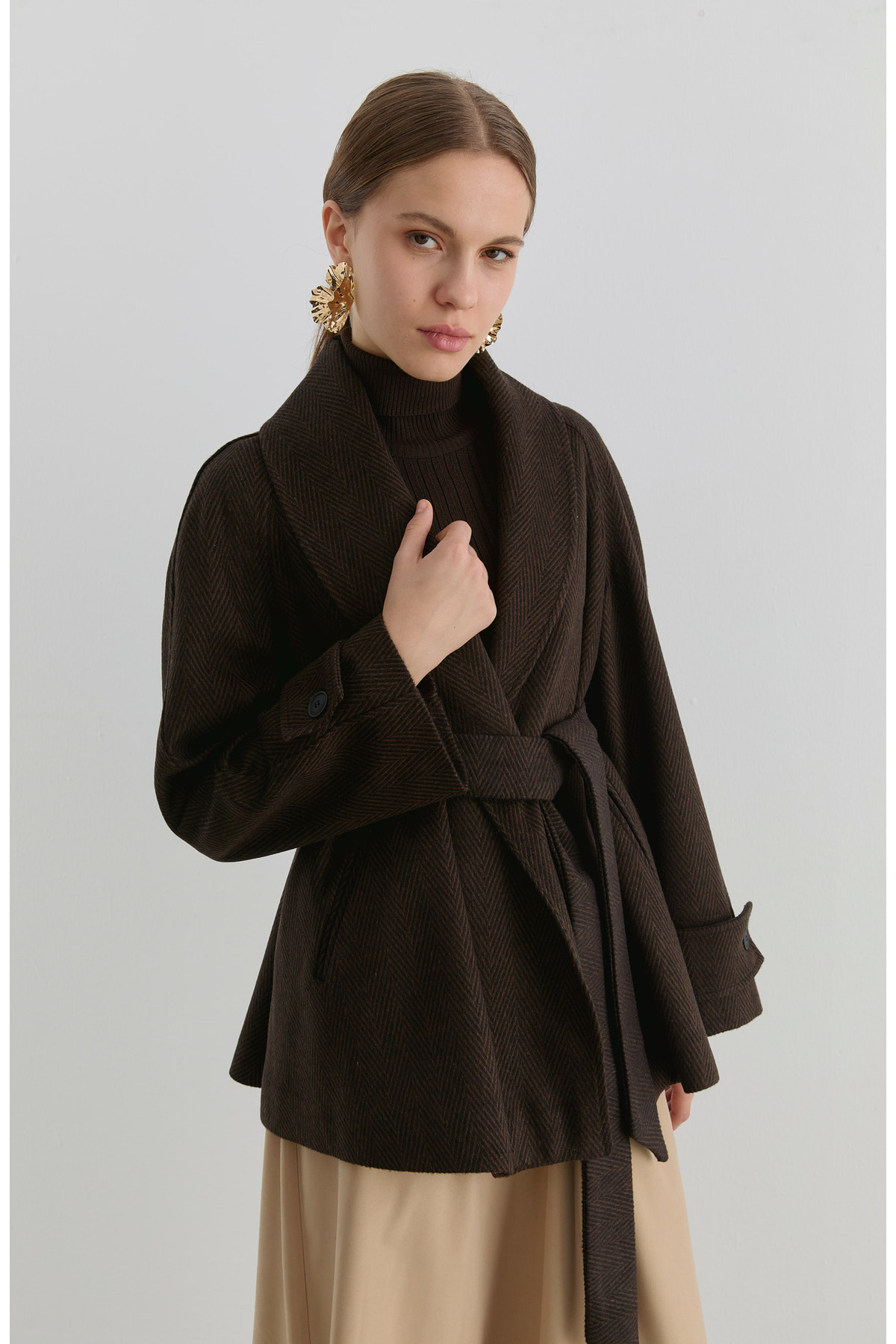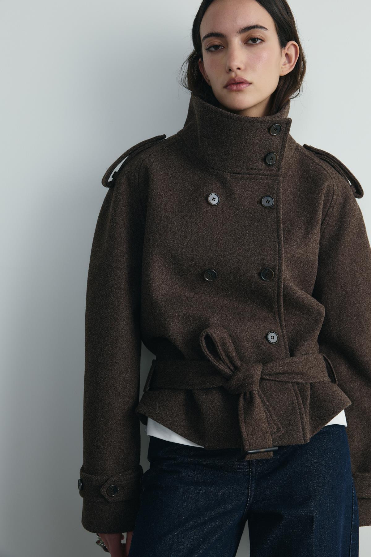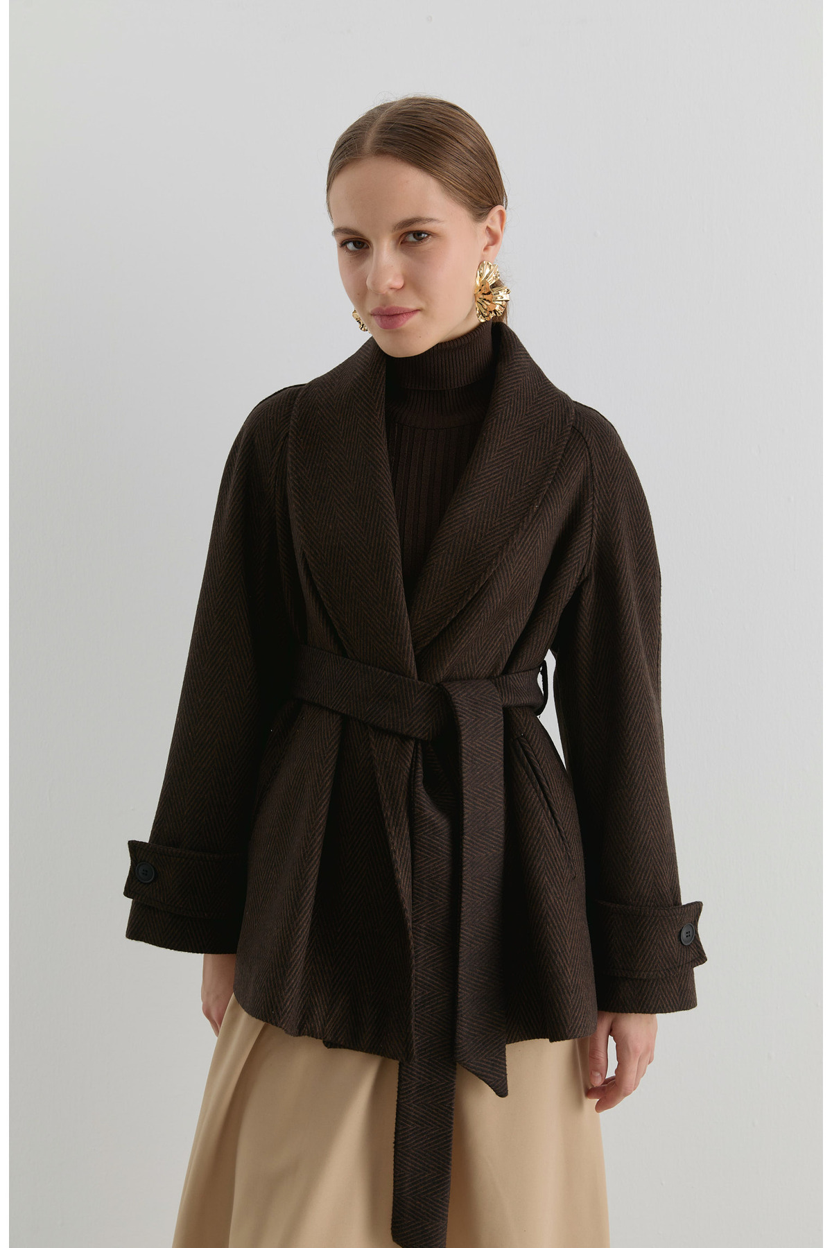 Kruvaze Taba Balıksırtı Midi Ceket Kaban Kruvaze Taba Balıksırtı Midi Ceket Kaban FA2025KS-E7273 XL
